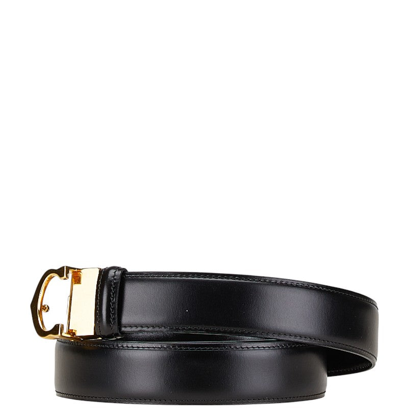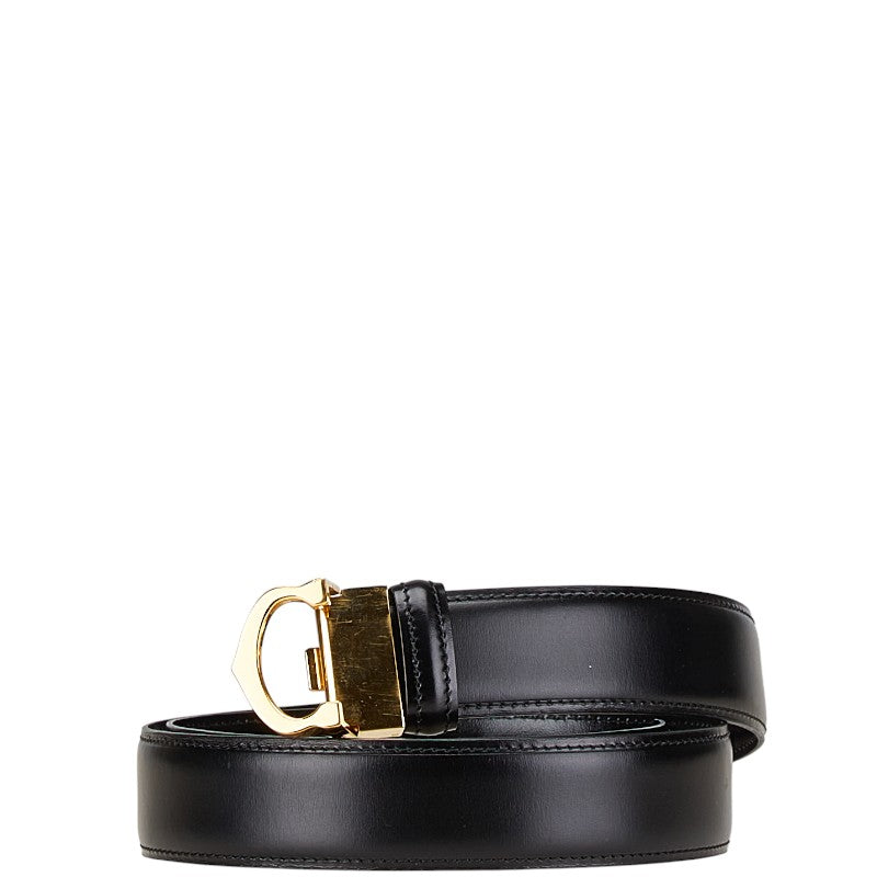 カルティエ マスト ドゥ カルティエ ベルト ブラック ゴールド レザー レディース CARTIER 【中古】