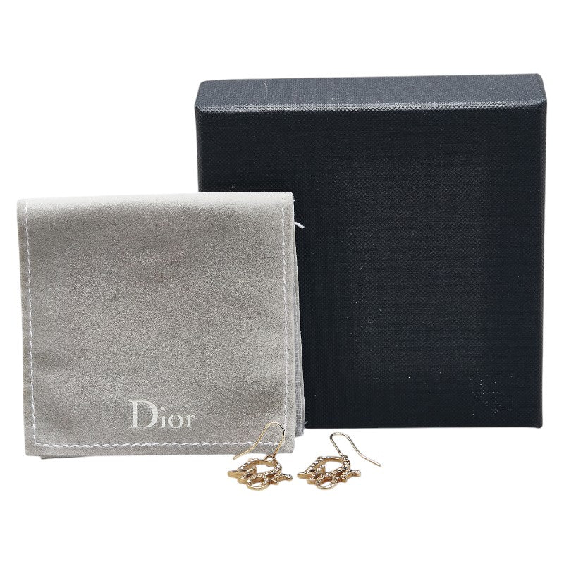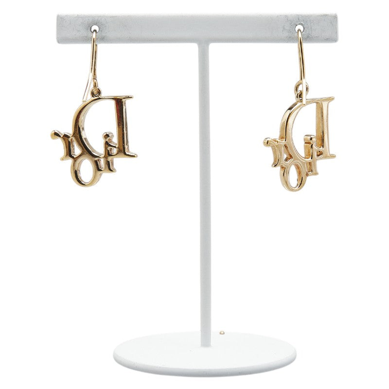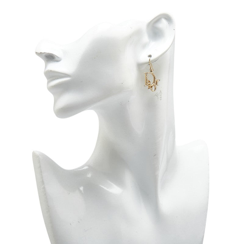 クリスチャンディオール ロゴ ラインストーン ピアス ゴールド メッキ レディース Christian Dior 【中古】