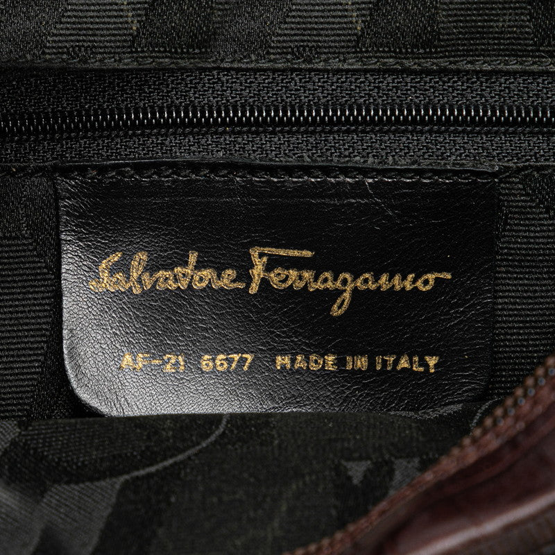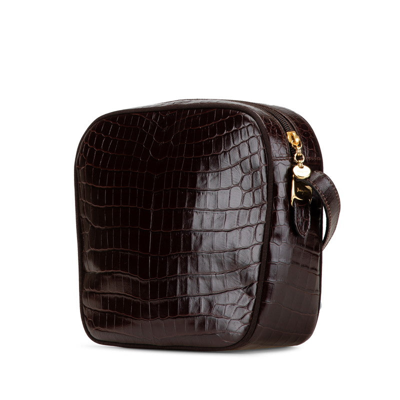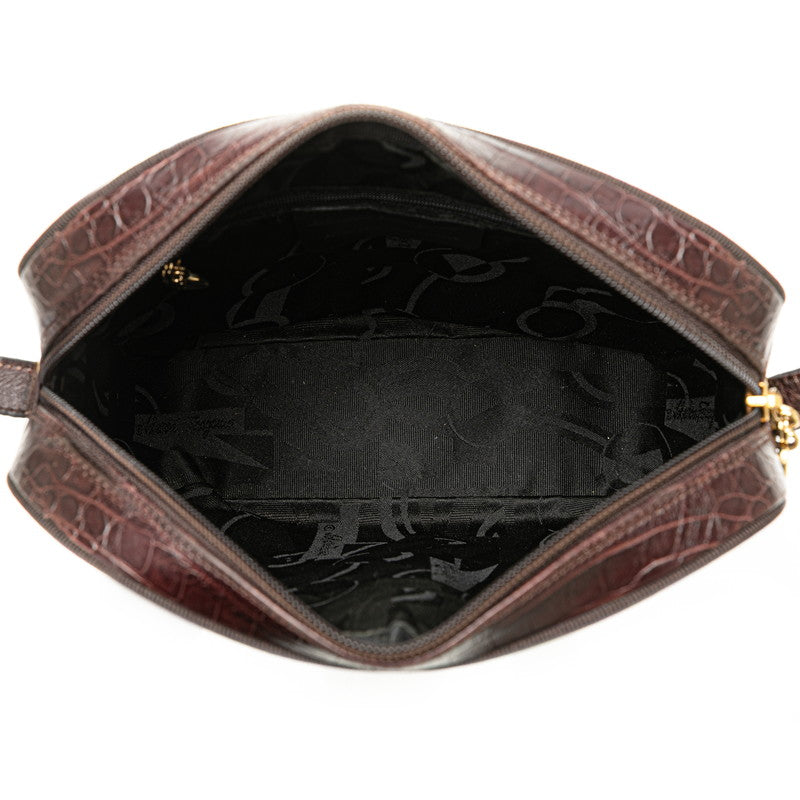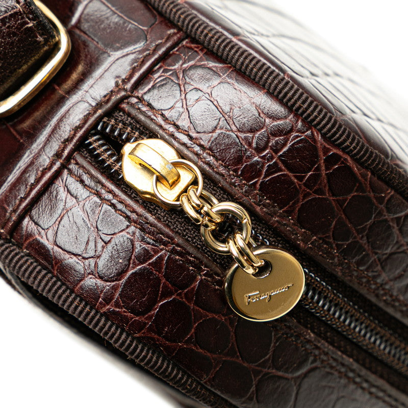 サルヴァトーレフェラガモ ヴァラ クロコ型押し 斜め掛け ショルダーバッグ ブラウン レザー レディース Salvatore Ferragamo 【中古】