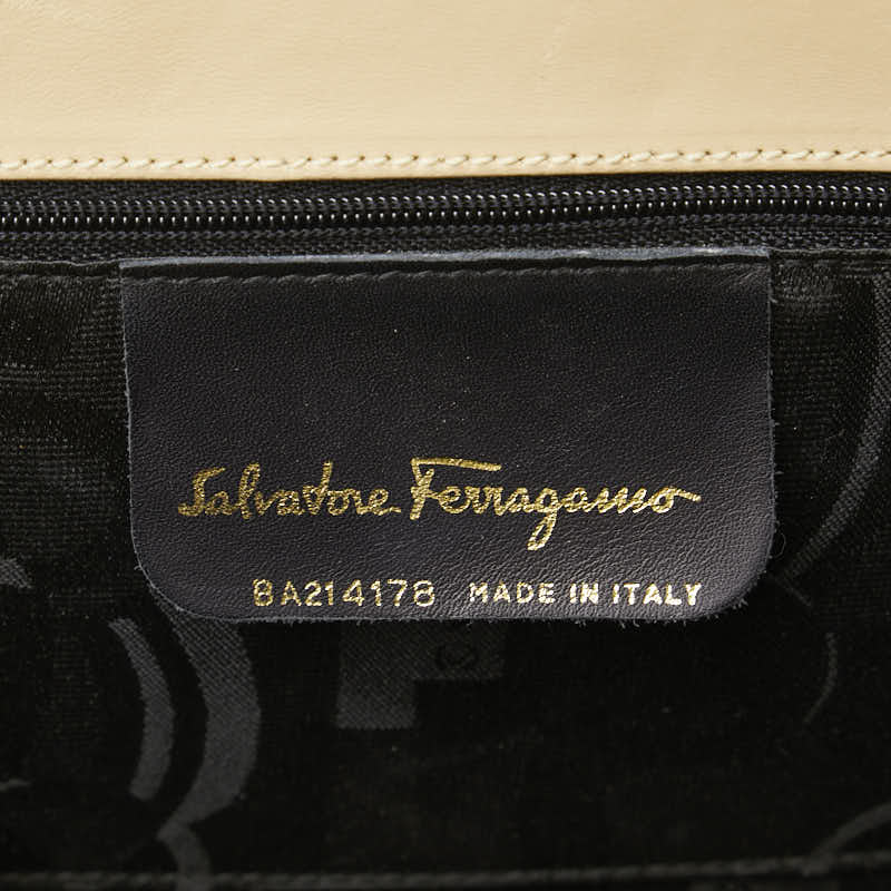 サルヴァトーレフェラガモ ヴァラ リボン ハンドバッグ BA214178 ベージュ レザー レディース Salvatore Ferragamo 【中古】