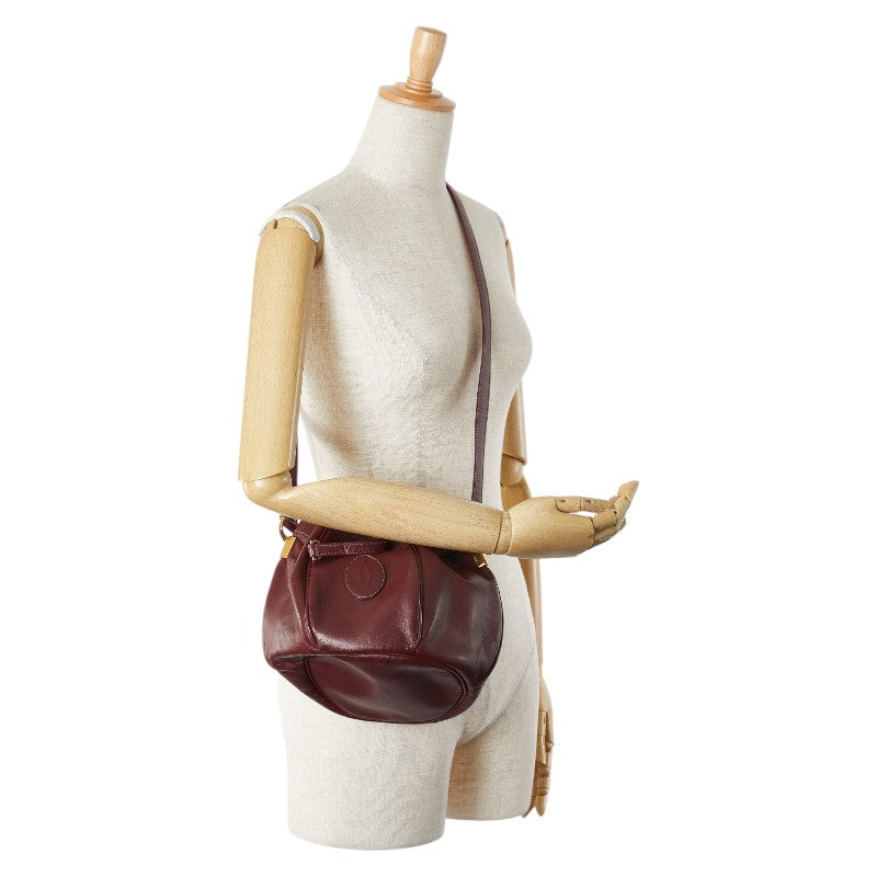 カルティエ マストライン 斜め掛け ショルダーバッグ ワインレッド レザー レディース CARTIER 【中古】