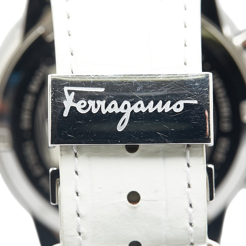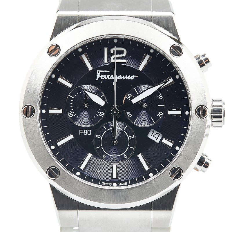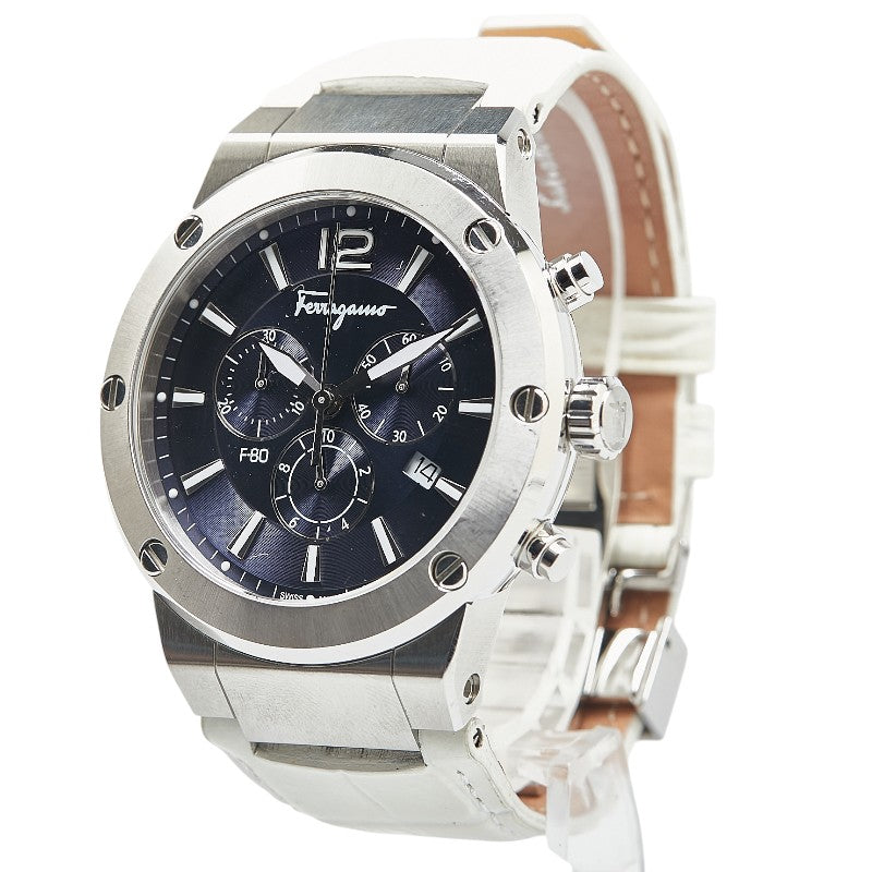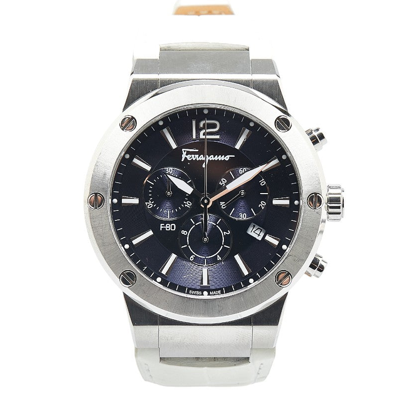 サルヴァトーレフェラガモ F-80 型押し 腕時計 クオーツ ネイビー文字盤 ステンレススチール レザー メンズ Salvatore Ferragamo 【中古】
