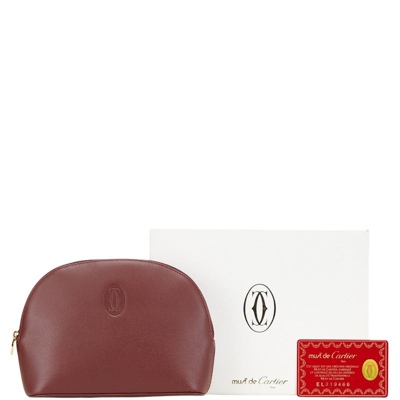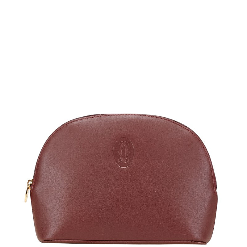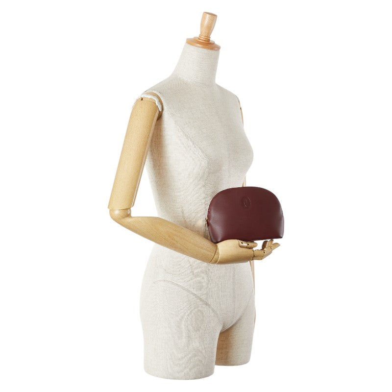 カルティエ マストライン ポーチ ワインレッド ボルドー レザー レディース CARTIER 【中古】