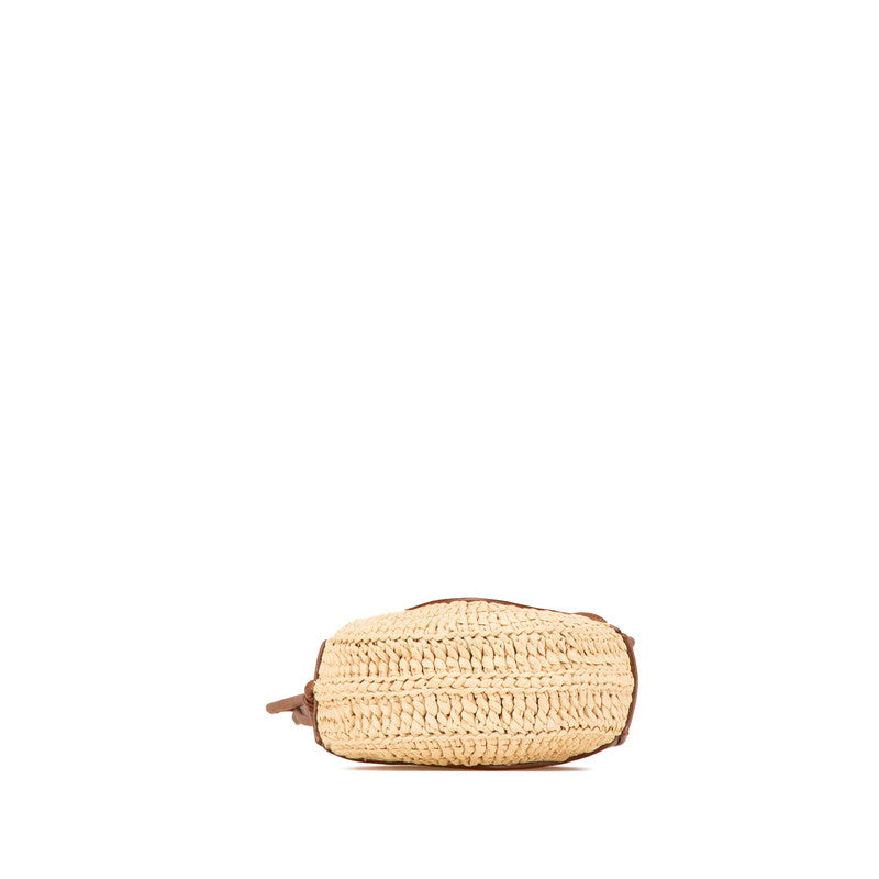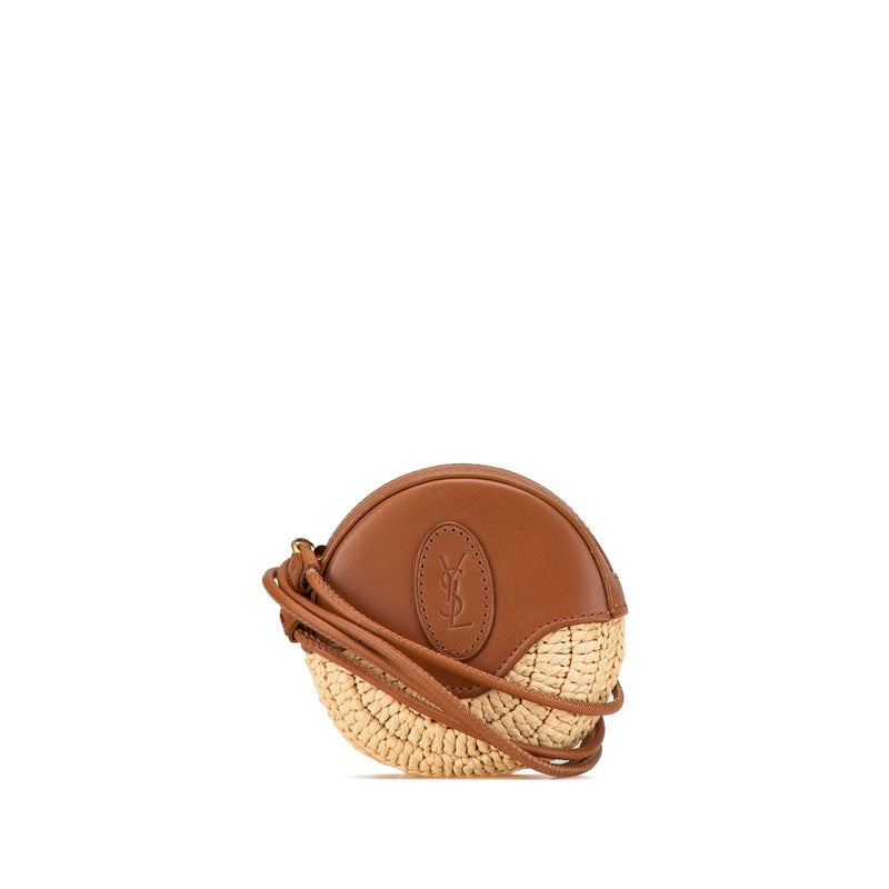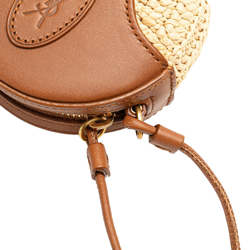 サンローラン カサンドラ 斜め掛け ミニショルダーバッグ ポシェット ベージュ ブラウン ラフィア レザー レディース SAINT LAURENT 【中古】
