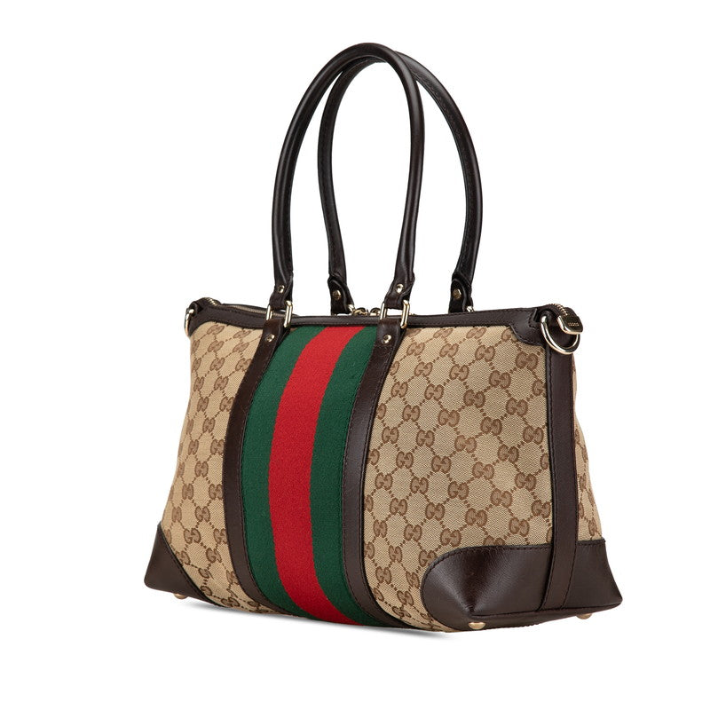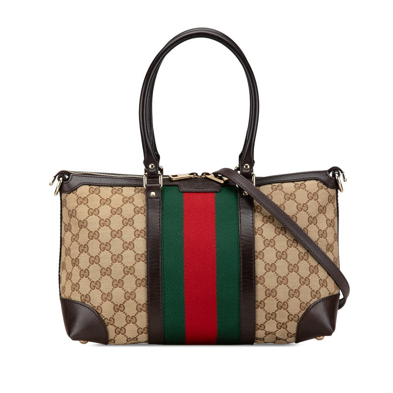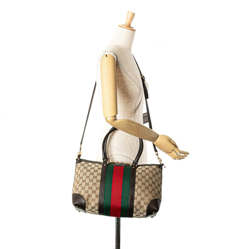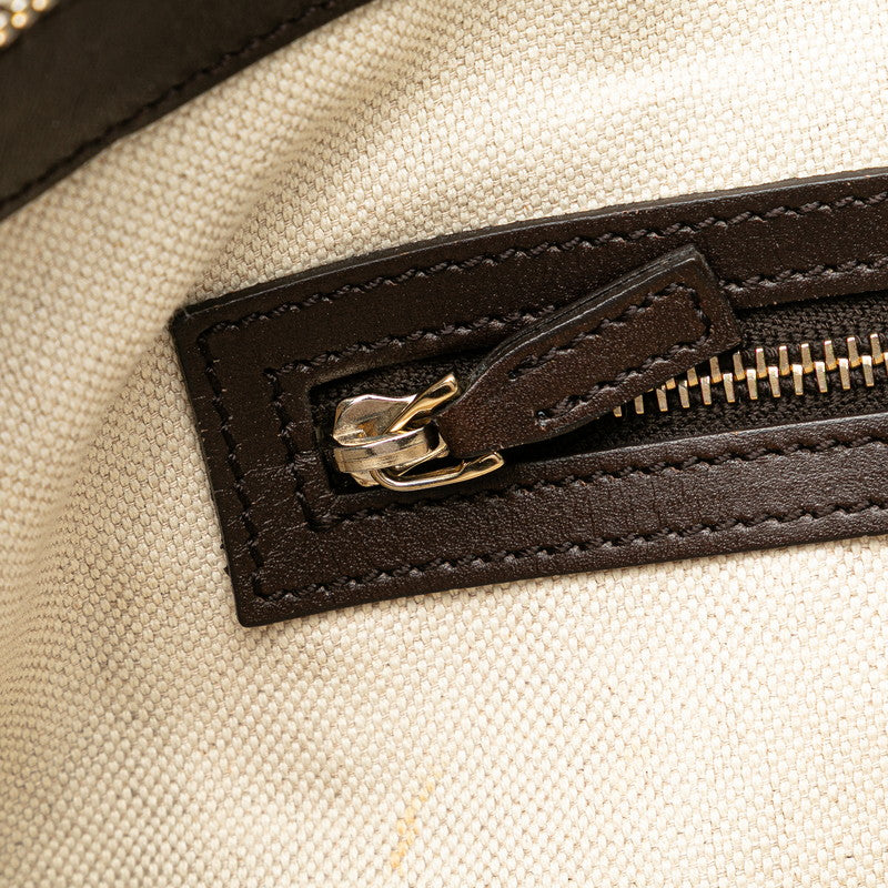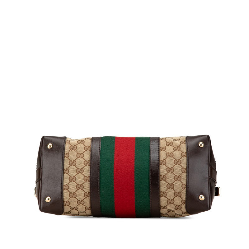 グッチ GGキャンバス シェリーライン ハンドバッグ ショルダーバッグ 2WAY 257341 ベージュ ブラウン キャンバス レザー レディース GUCCI 【中古】