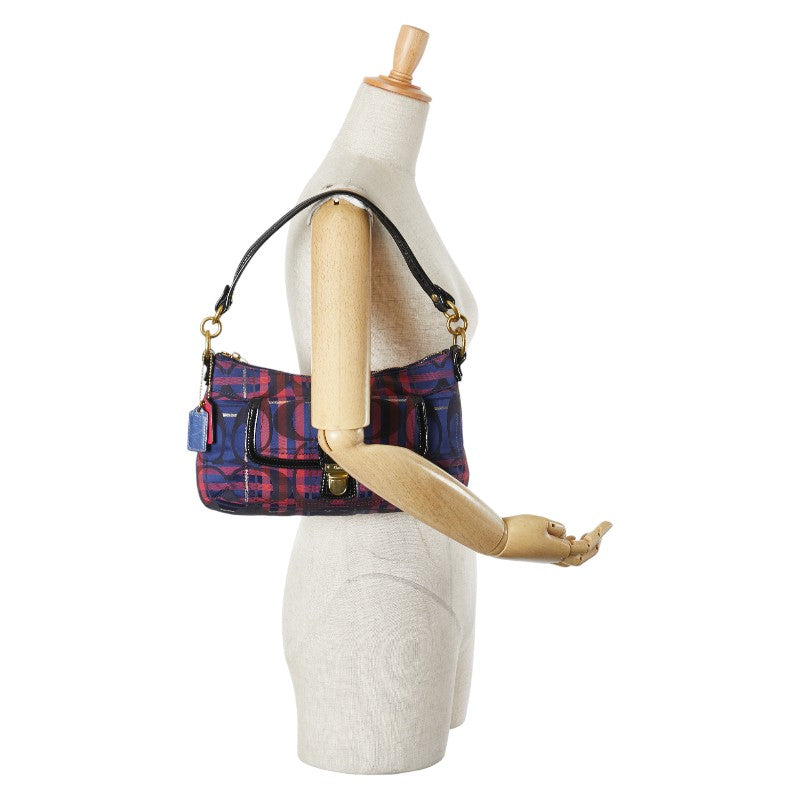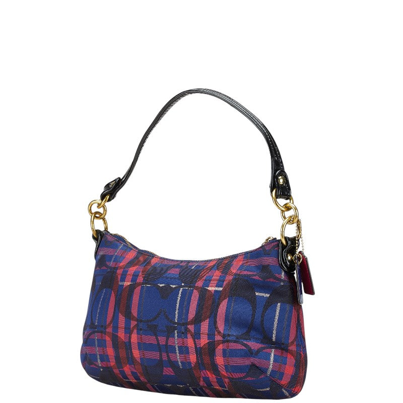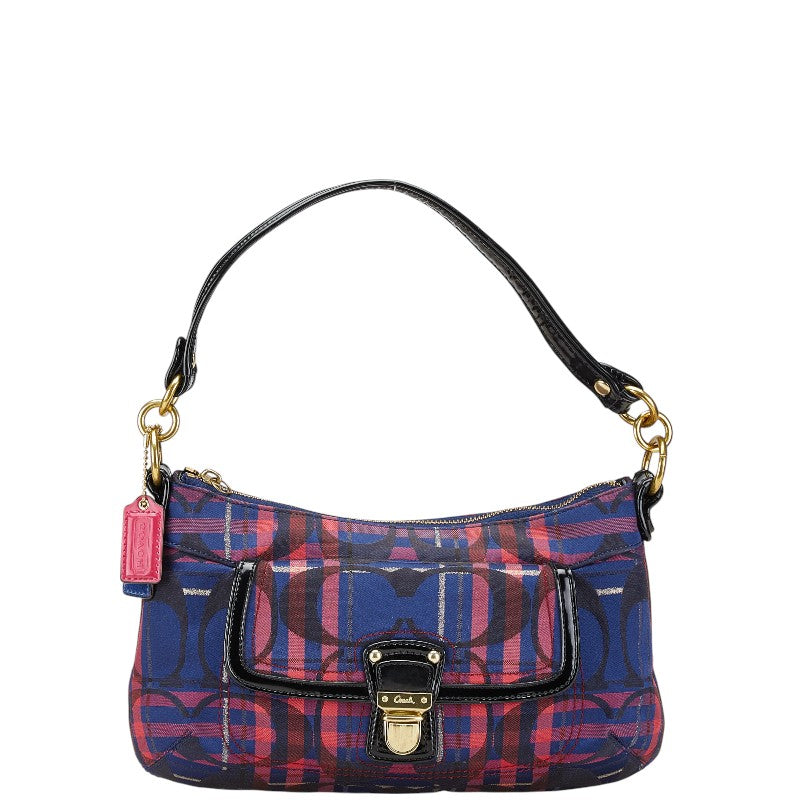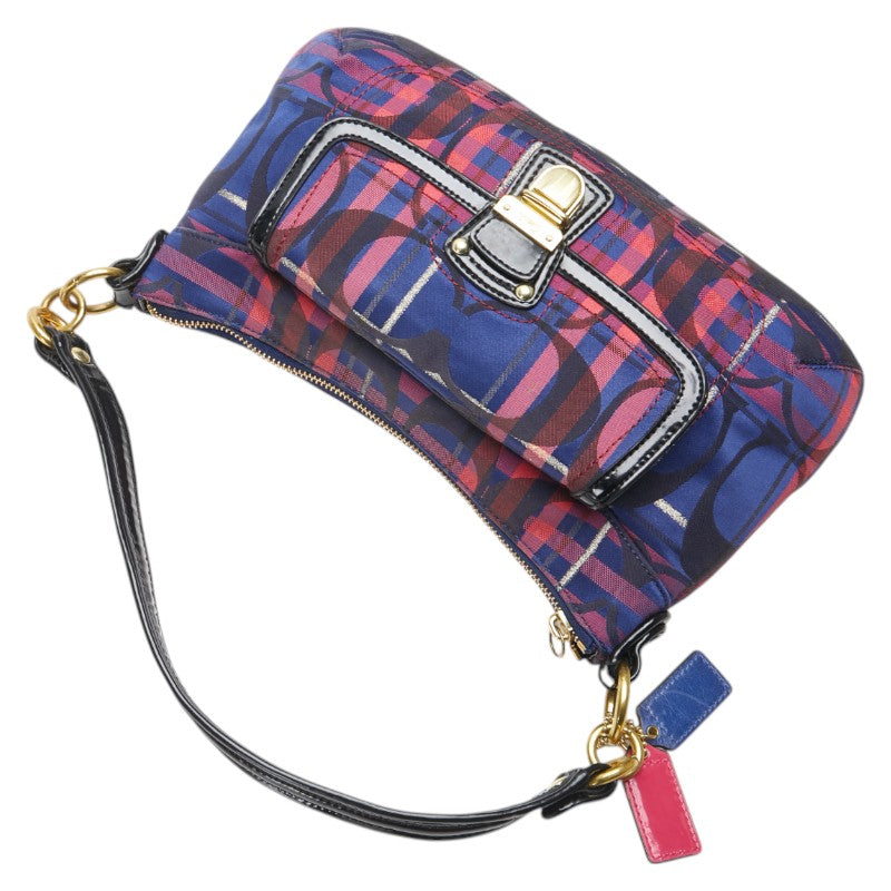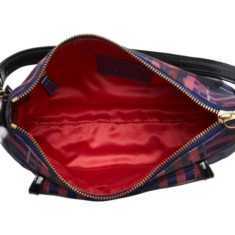 コーチ ポピー タータン グルービー ハンドバッグ ワンショルダーバッグ 21621 ブルー レッド ブラック ナイロン エナメル レディース COACH 【中古】