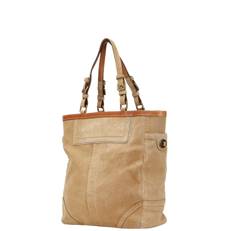 コーチ トートバッグ ショルダーバッグ ベージュ ブラウン スウェード レディース COACH 【中古】