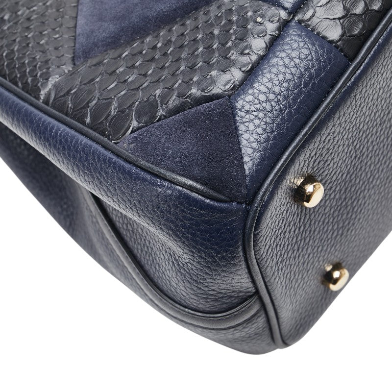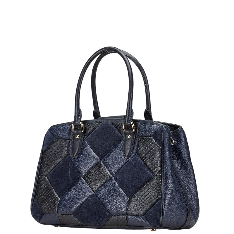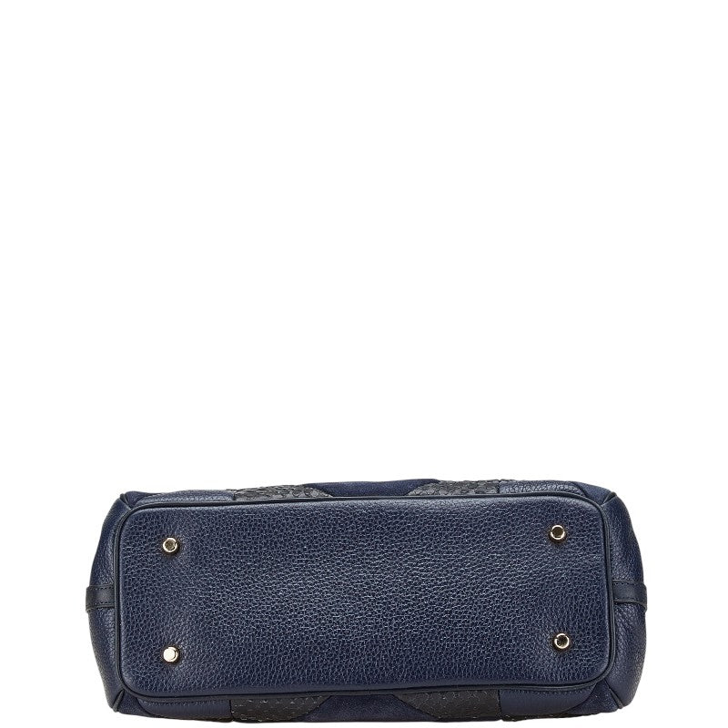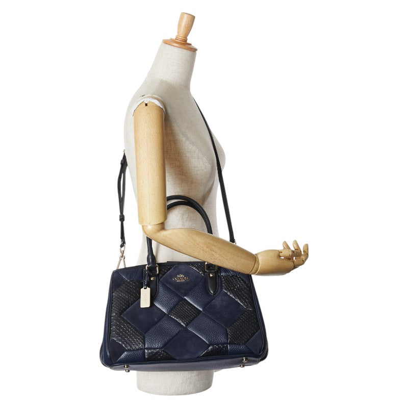 コーチ パッチワーク キャリーオール ハンドバッグ ショルダーバッグ 2WAY ネイビー ブラック レザー レディース COACH 【中古】