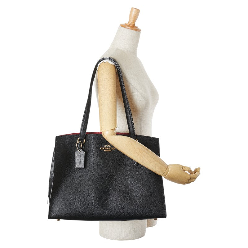 コーチ テイタム キャリーオール 40 ハンドバッグ トートバッグ C4077 ブラック トゥルーレッド レザー レディース COACH 【中古】