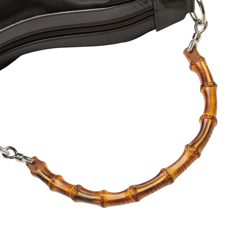 グッチ バンブー ハンドバッグ 000 1075 ブラウン ナイロン レザー レディース GUCCI 【中古】