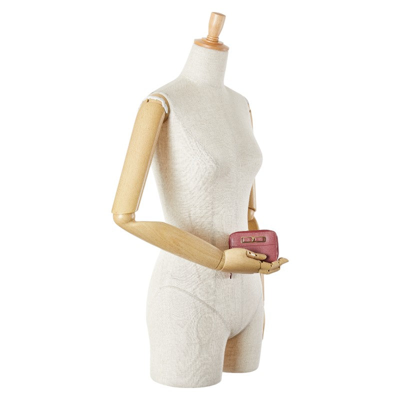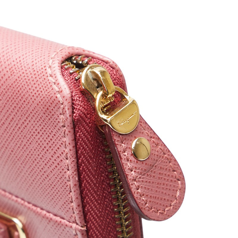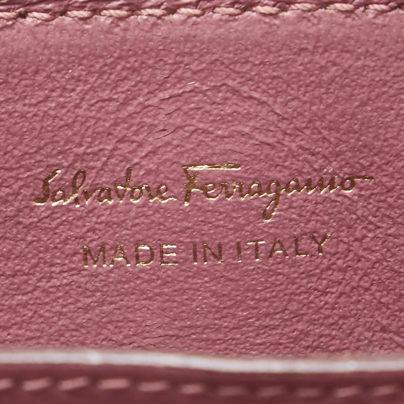 サルヴァトーレフェラガモ ヴァラ リボン カードケース ピンク ゴールド レザー レディース Salvatore Ferragamo 【中古】