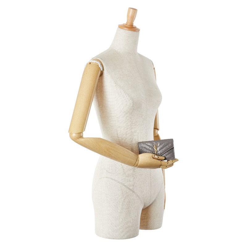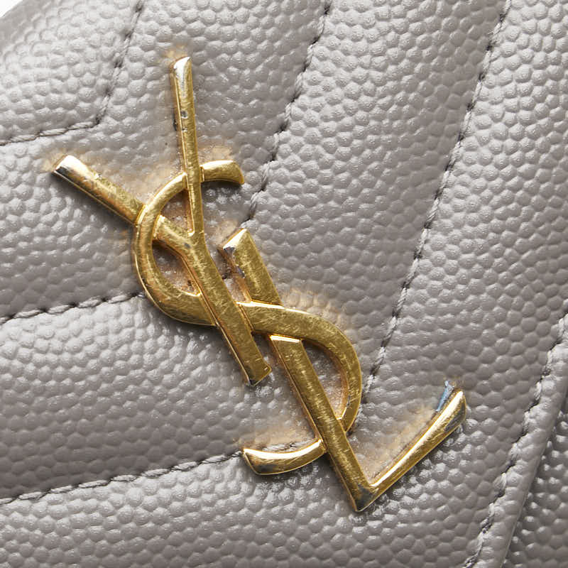サンローラン YSLロゴ カサンドラ フラグメント カードケース グレー レザー レディース SAINT LAURENT 【中古】