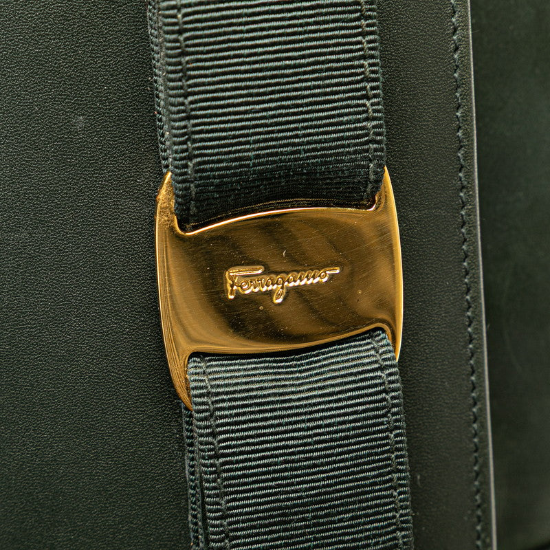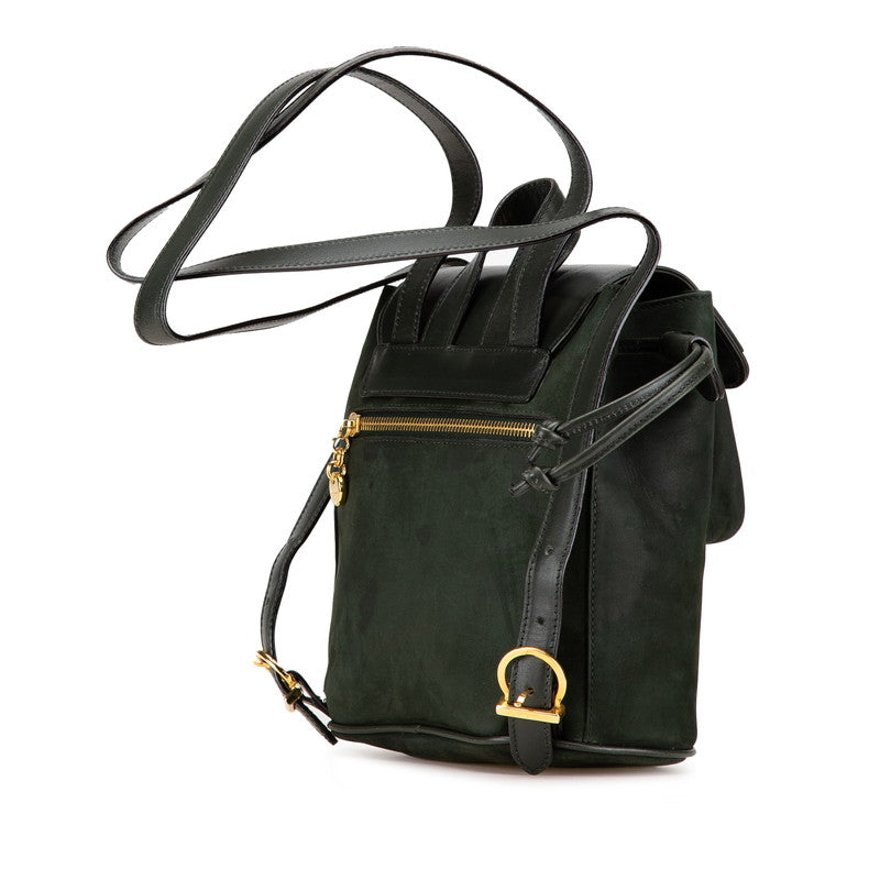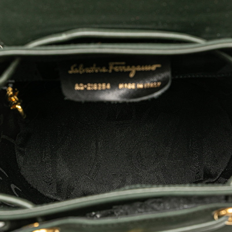 サルヴァトーレフェラガモ ヴァラリボン リュック バックパック グリーン レザー スエード レディース Salvatore Ferragamo 【中古】