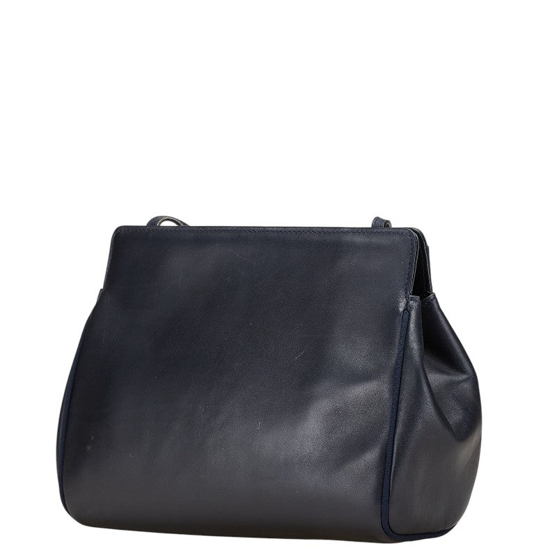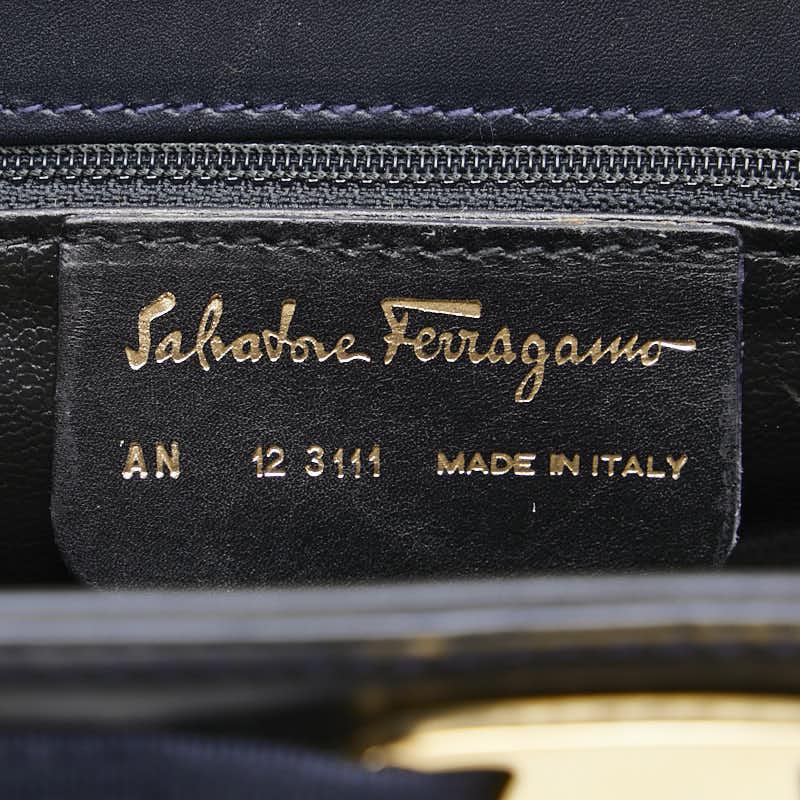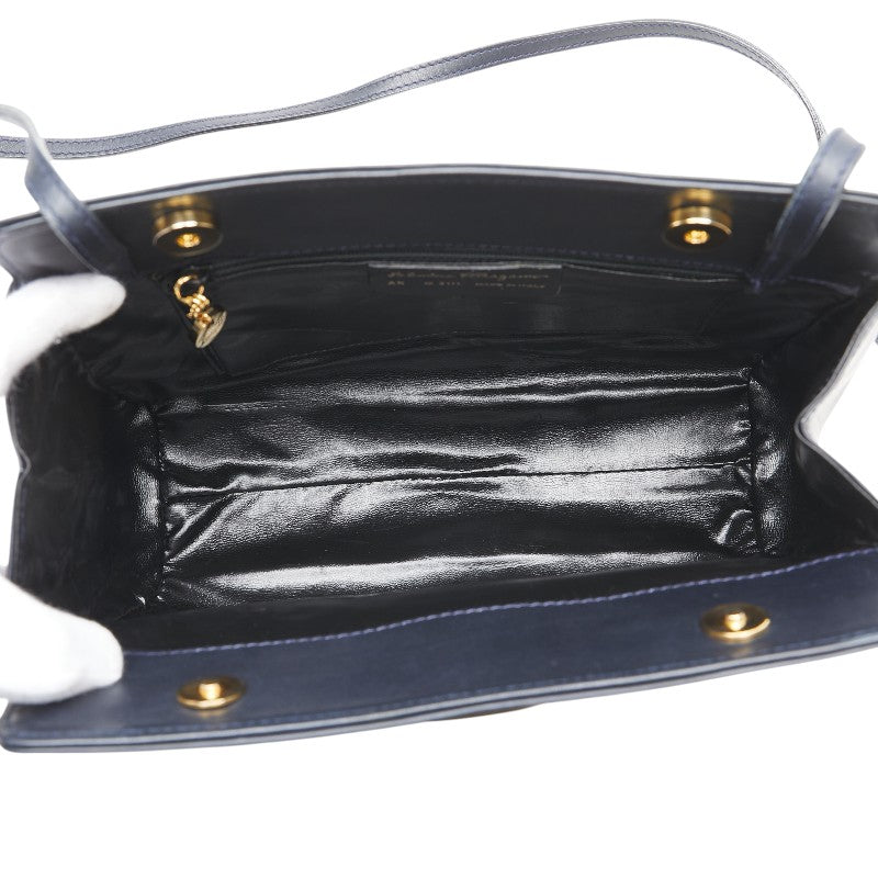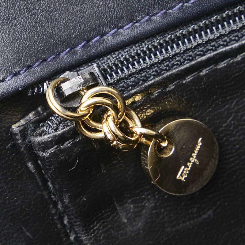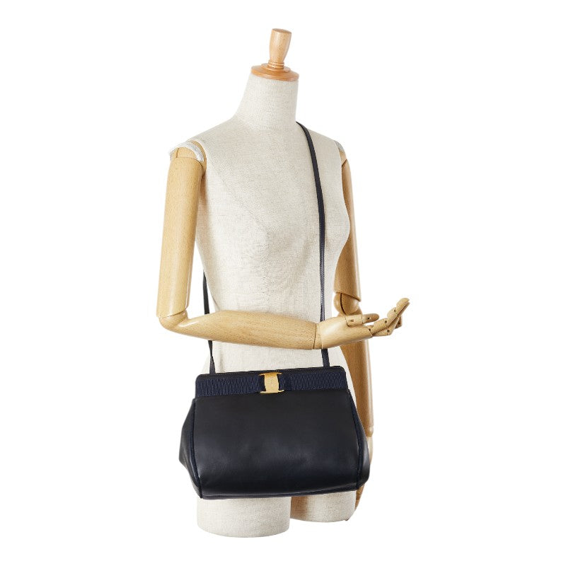 サルヴァトーレフェラガモ ヴァラリボン 斜め掛け ショルダーバッグ ネイビー レザー レディース Salvatore Ferragamo 【中古】