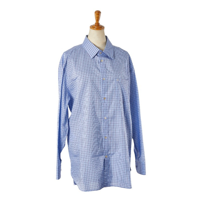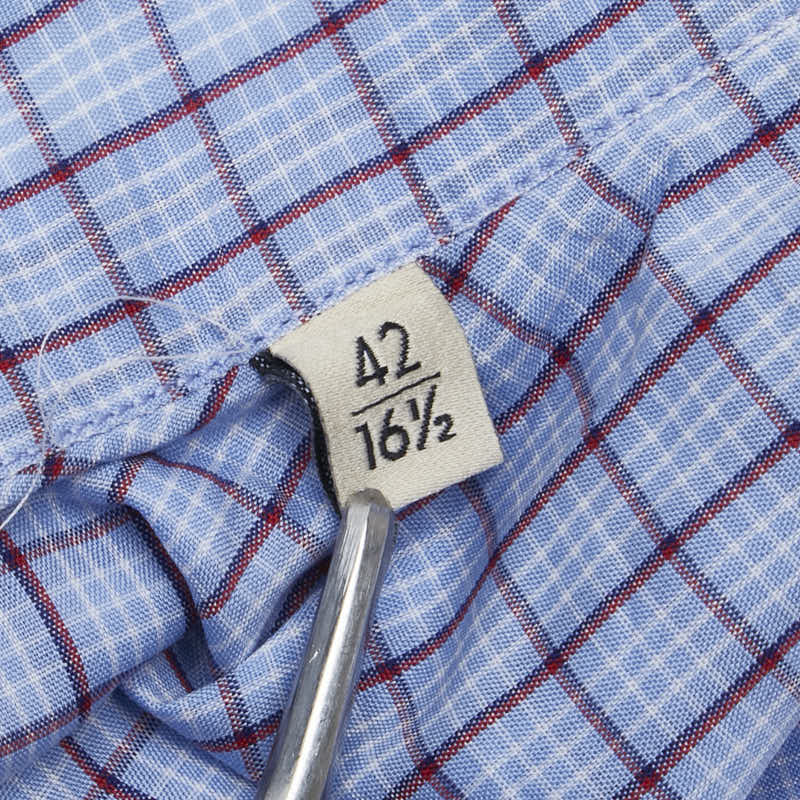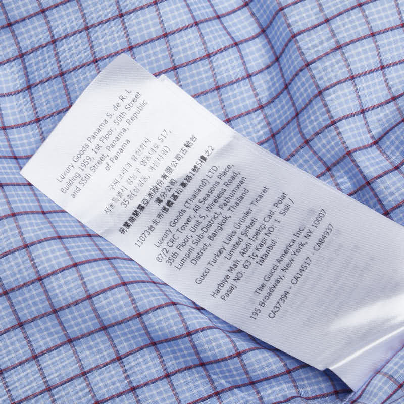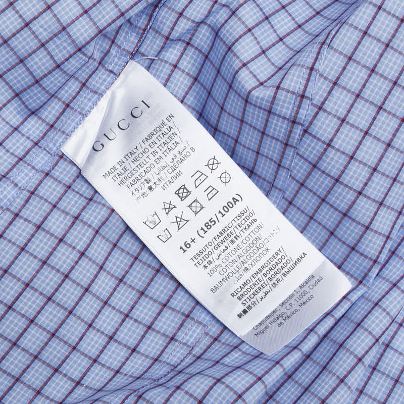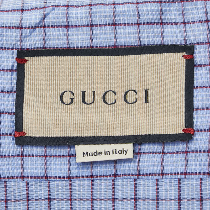グッチ 格子チェック GG刺繍 長袖シャツ サイズ:42 654926 ブルー レッド コットン メンズ GUCCI 【中古】