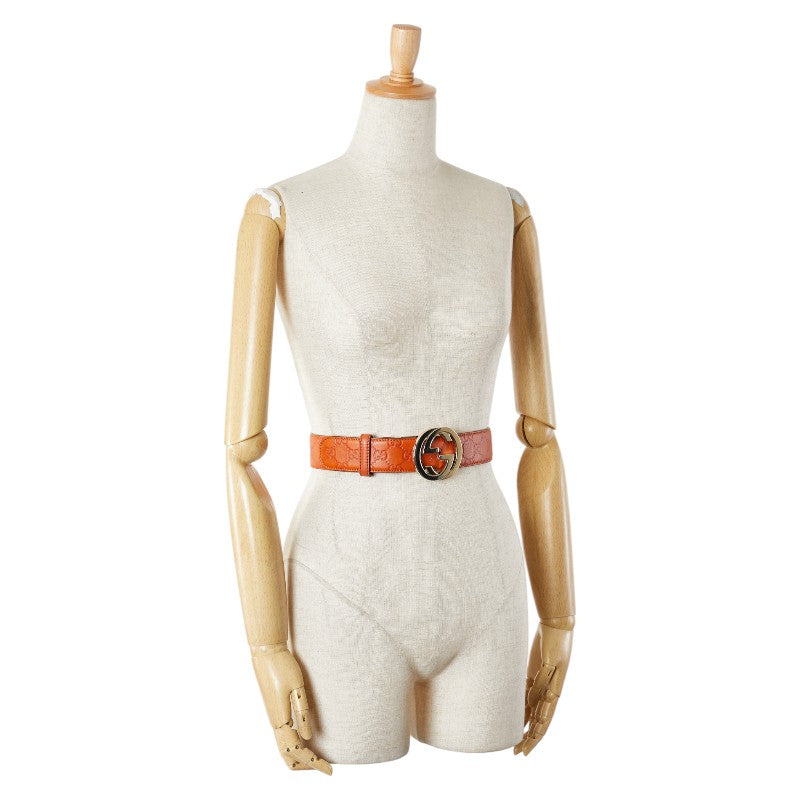 グッチ グッチシマ インターロッキングG ベルト 95/38 114876 オレンジ レザー メンズ GUCCI 【中古】