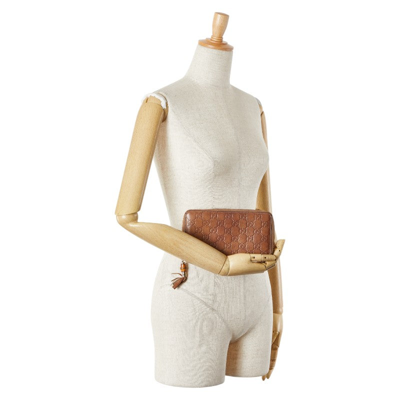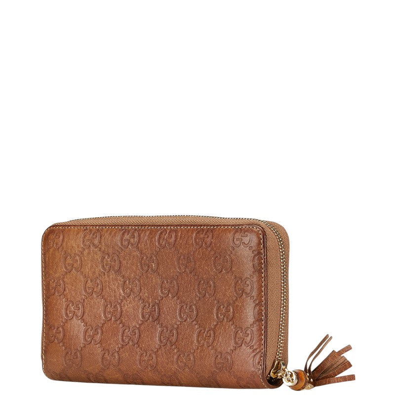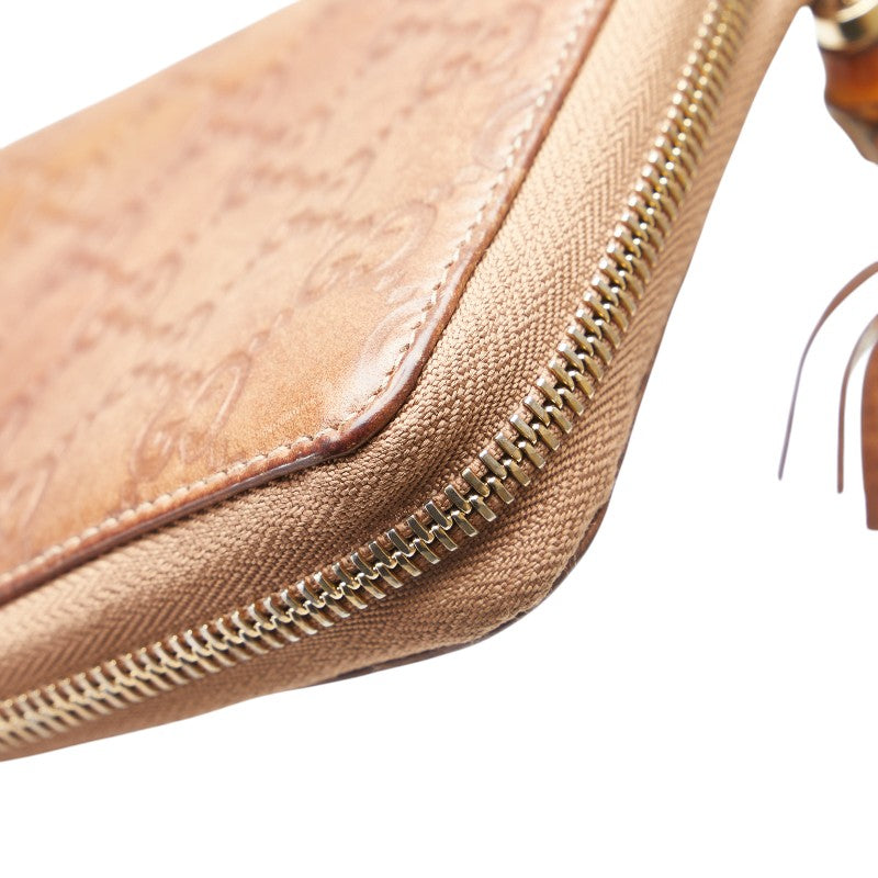 グッチ グッチシマ バンブー 長財布 ラウンドファスナー 308281 ブラウン レザー レディース GUCCI 【中古】