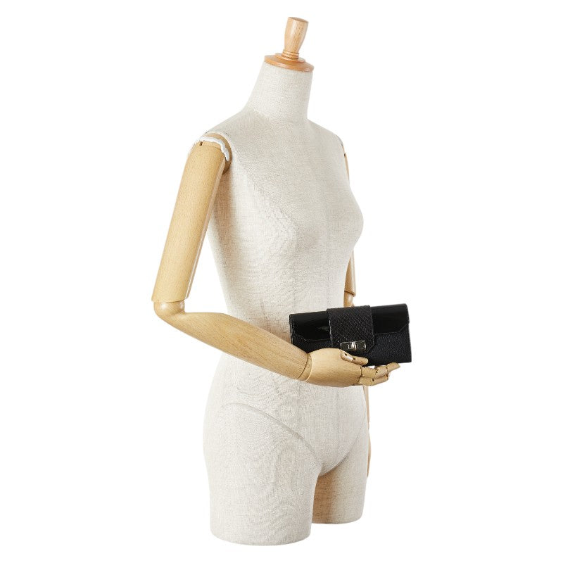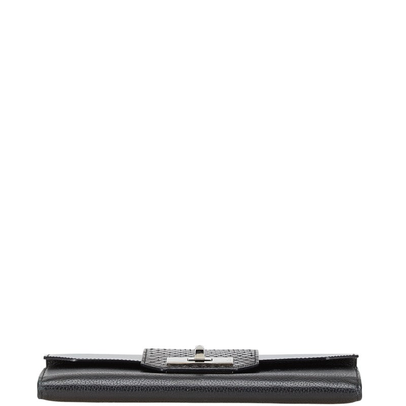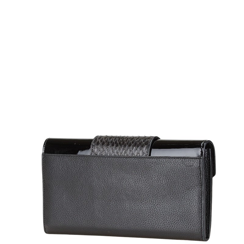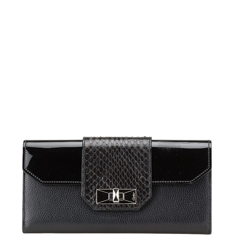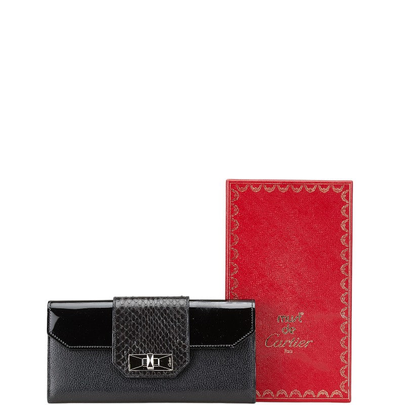 カルティエ パヴィリオン クラシックフェミニン パイソン 長財布 L3001135 ブラック エナメル レザー レディース CARTIER 【中古】