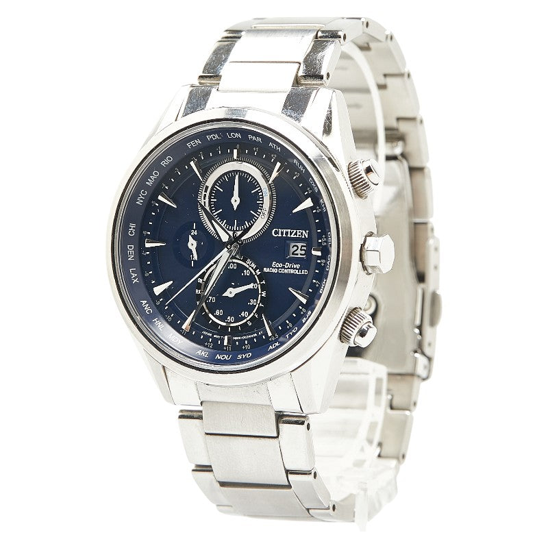 シチズン 腕時計 AT8260-85L エコドライブ電波時計 ネイビー文字盤 ステンレススチール メンズ CITIZEN 【中古】
