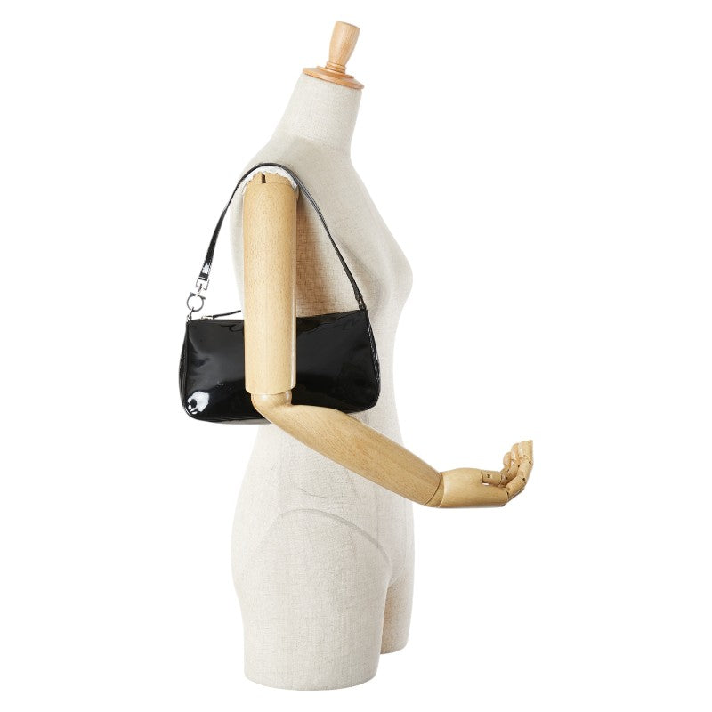 サルヴァトーレフェラガモ ガンチーニ ミニ ハンドバッグ ショルダーバッグ ブラック エナメル レディース Salvatore Ferragamo 【中古】