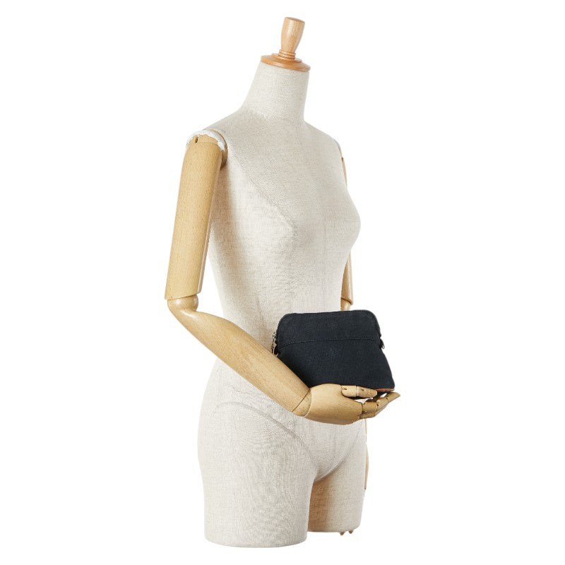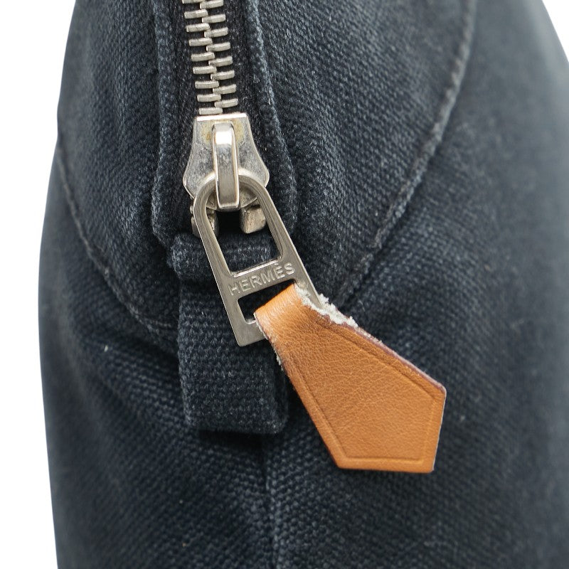 エルメス ボリードポーチ20 ポーチ ブラック ブラウン コットン レザー レディース HERMES 【中古】