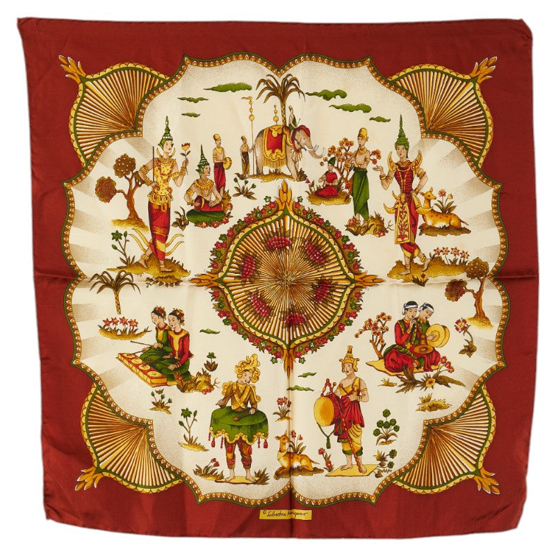 サルヴァトーレフェラガモ 総柄 スカーフ レッド マルチカラー レディース Salvatore Ferragamo 【中古】