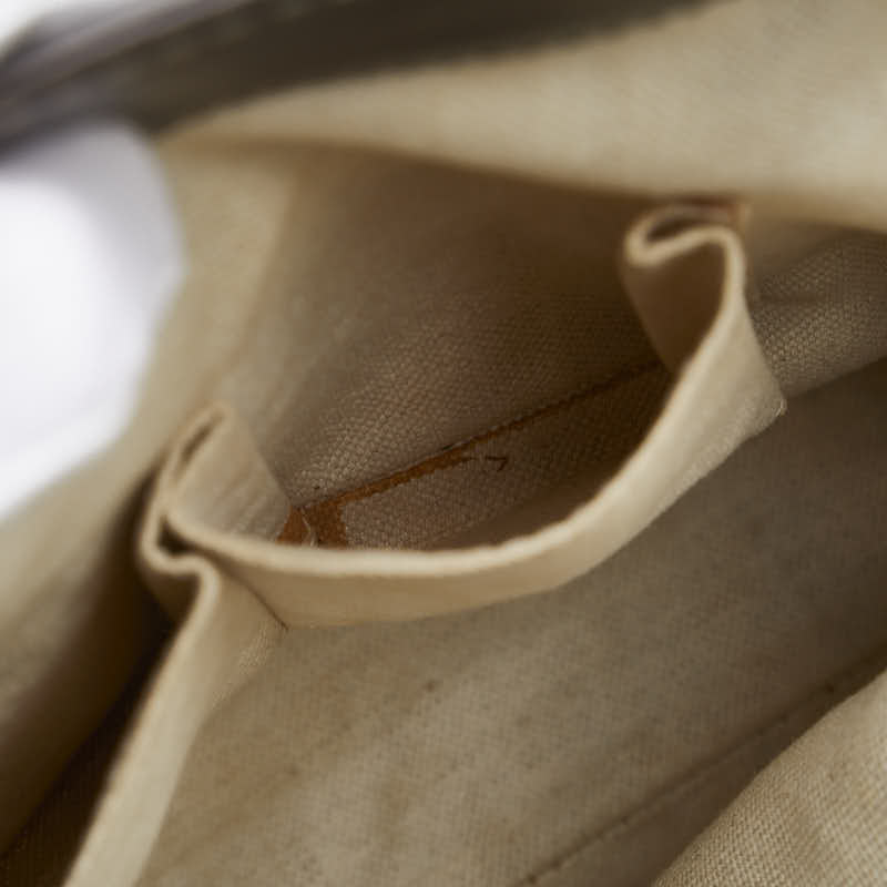 外側⇒スレ・ひび サイド⇒スレ・若干のシミ・糸切れ 底面⇒角スレ・ひび ハンドル⇒ひび 金具⇒スレ 開閉口⇒スレ 内側⇒全体的に汚れ・ペン跡、内ポケットにノリ染み |