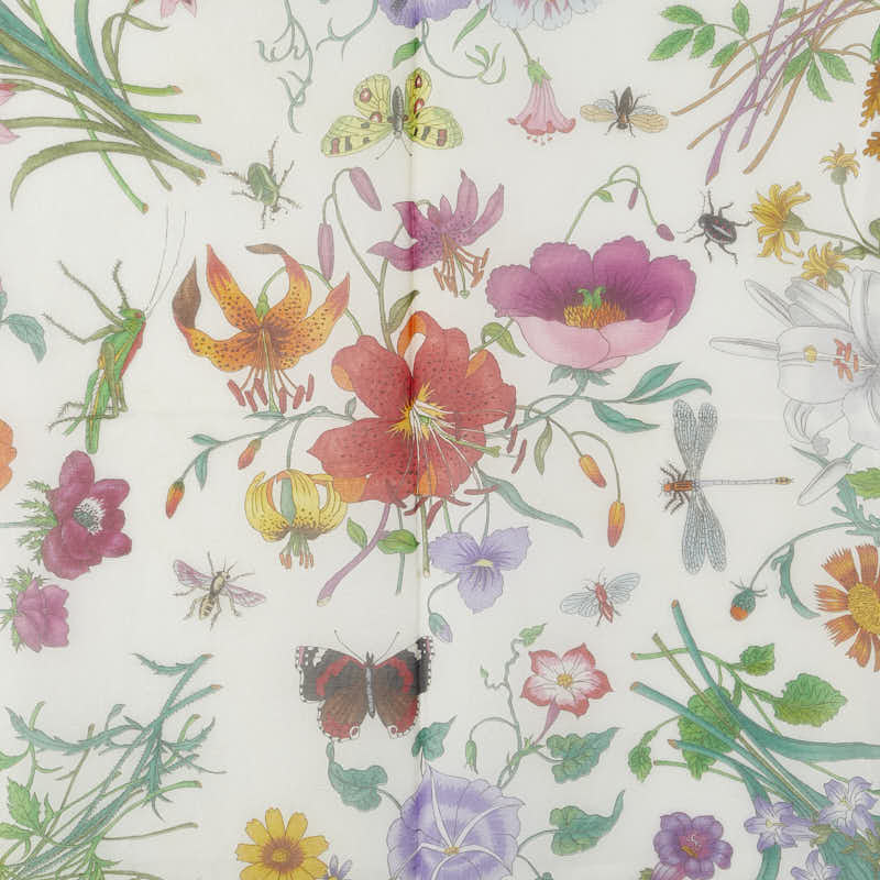グッチ フローラ スカーフ グリーン マルチカラー シルク レディース GUCCI 【中古】