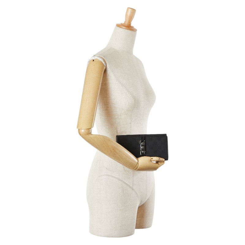 グッチ GGキャンバス ジャッキー 二つ折り財布 05479 ブラック キャンバス レザー レディース GUCCI 【中古】