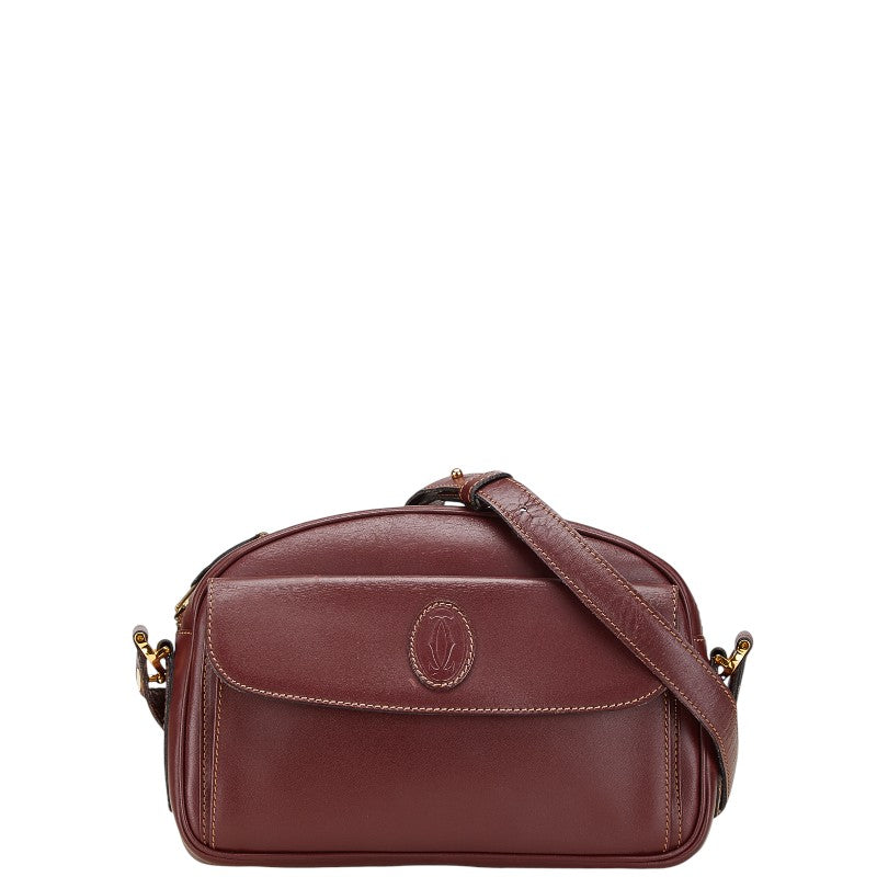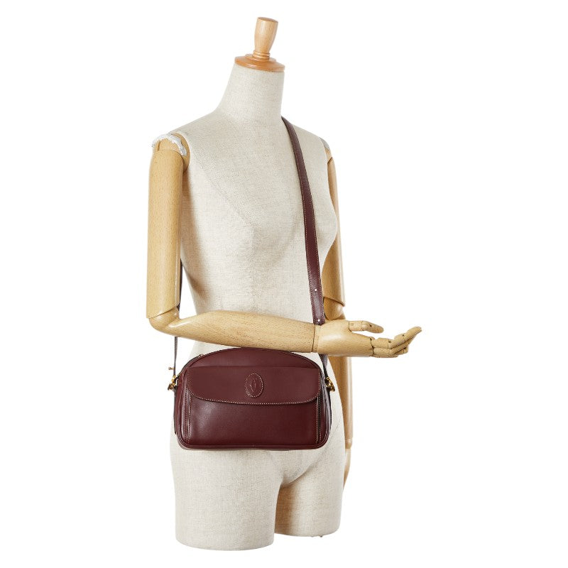 カルティエ マストライン 斜め掛け ショルダーバッグ ワインレッド ボルドー レザー レディース CARTIER 【中古】