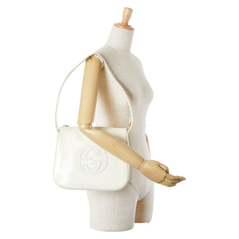 グッチ インターロッキングG ハンドバッグ 001 1364 ホワイト レザー レディース GUCCI 【中古】