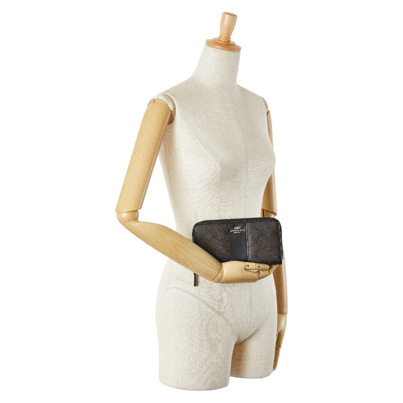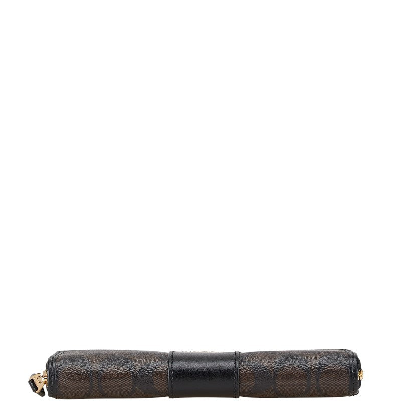 コーチ シグネチャー アコーディオン ジップ 長財布 F54630 IMAA8 ブラウン ブラック PVC レザー レディース COACH 【中古】