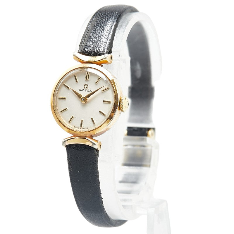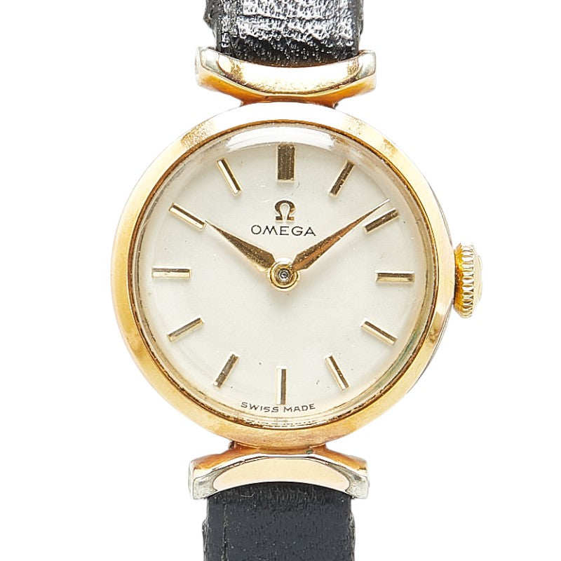 オメガ 腕時計 手巻き ベージュ文字盤 ステンレススチール レザー レディース OMEGA 【中古】