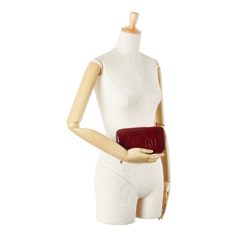 カルティエ ハッピーバースデー 長財布 ワインレッド ボルドー パテントレザー レディース CARTIER 【中古】