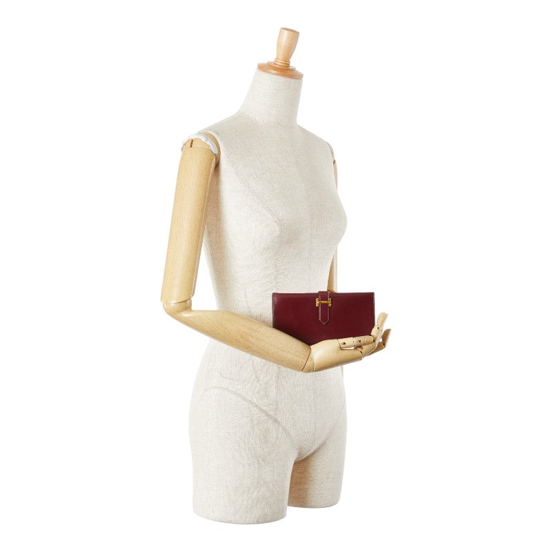 エルメス ベアン クラシック 長財布 ワインレッド ボルドー ボックスカーフ レディース HERMES 【中古】