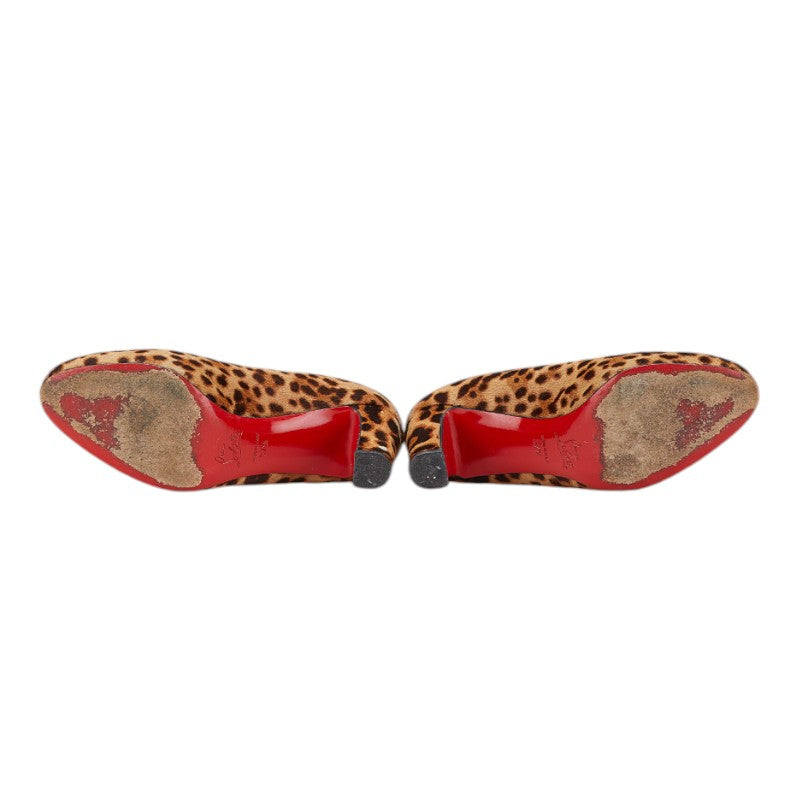 クリスチャンルブタン レオパード パンプス ハイヒール サイズ:37 1/2 ベージュ ブラウン ハラコ レディース Christian Louboutin 【中古】