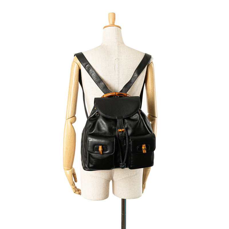 グッチ バンブー リュック バックパック 003 2058 0016 ブラック レザー レディース GUCCI 【中古】