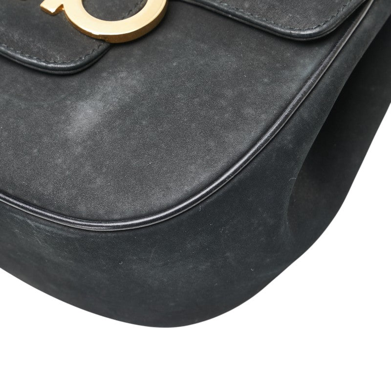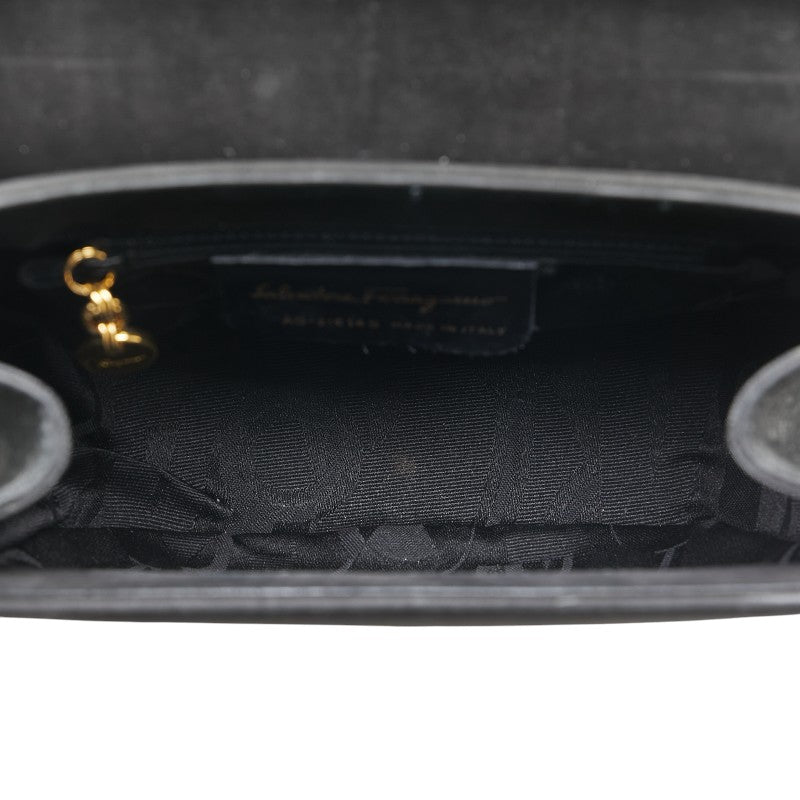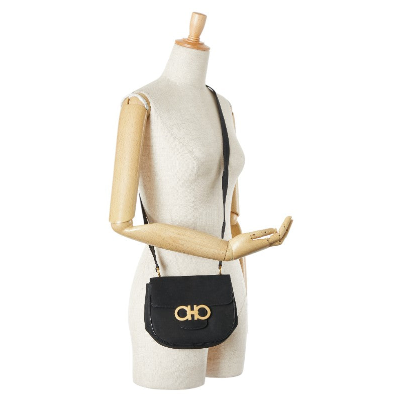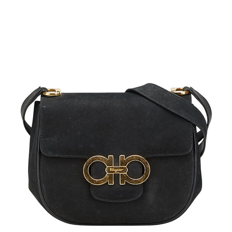 サルヴァトーレフェラガモ ガンチーニ 斜め掛け ショルダーバッグ ブラック スエード レディース Salvatore Ferragamo 【中古】