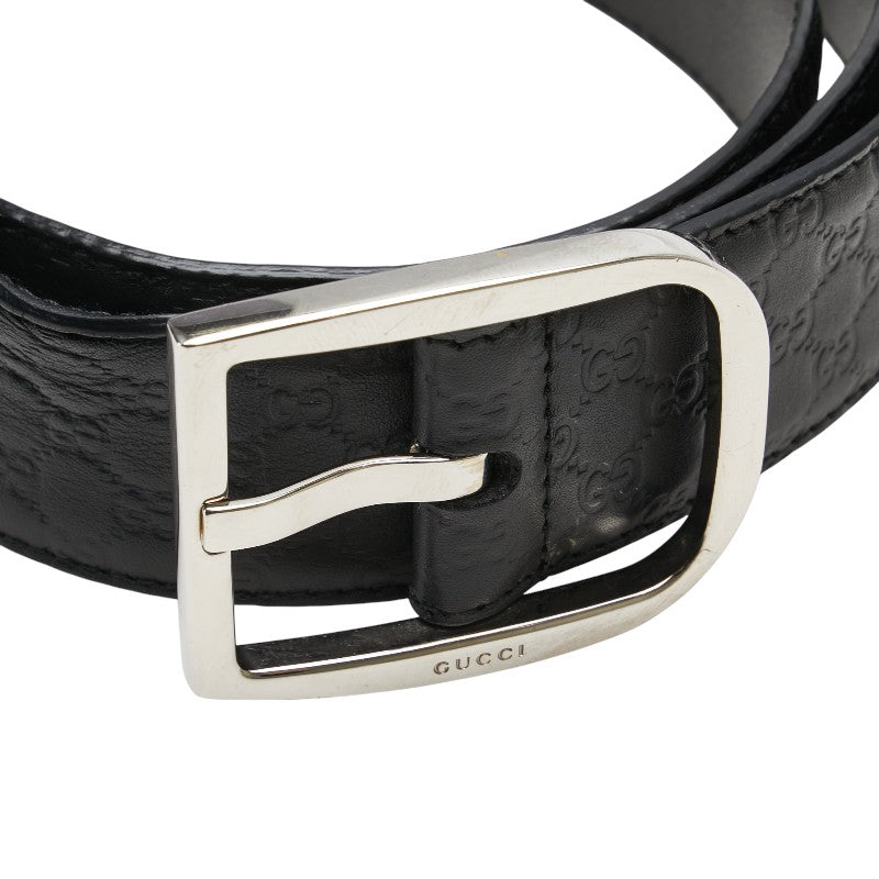 グッチ マイクログッチシマ ベルト 90/36 449716 ブラック シルバー レザー メンズ GUCCI 【中古】