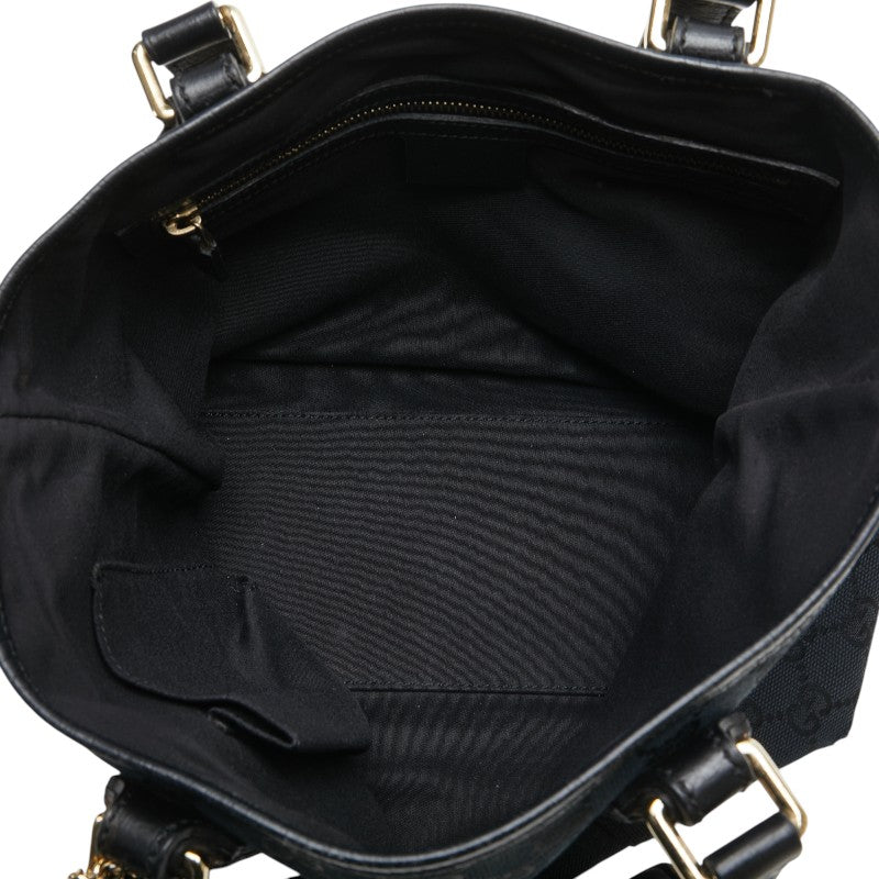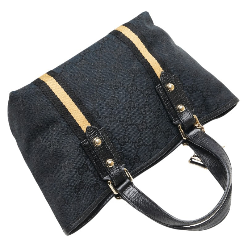 グッチ GGキャンバス シェリーライン ハンドバッグ 139261 ブラック ベージュ キャンバス レザー レディース GUCCI 【中古】