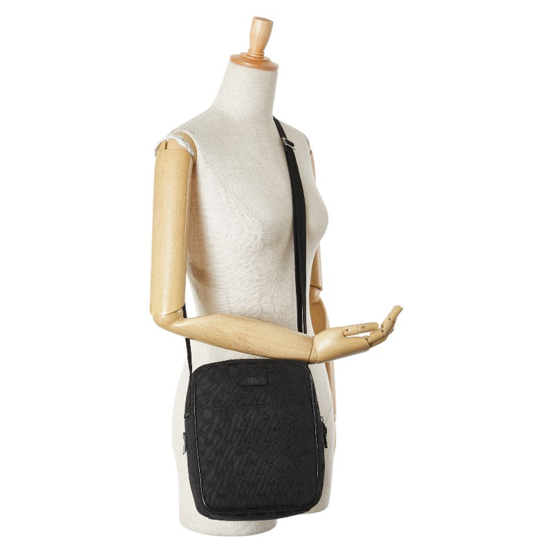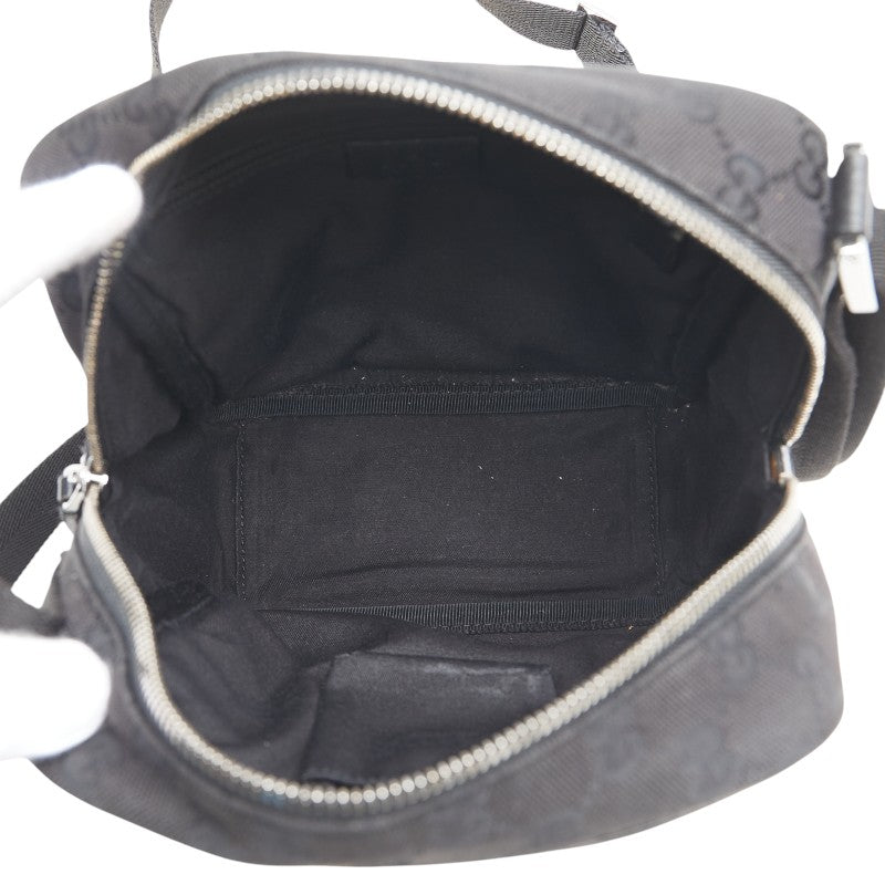 グッチ GGキャンバス 斜め掛け ショルダーバッグ 122759 ブラック キャンバス レザー レディース GUCCI 【中古】