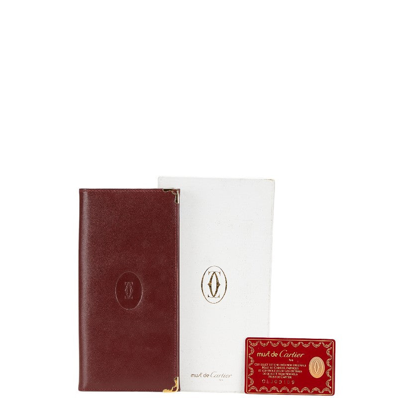 カルティエ マストライン 長財布 ワインレッド レザー レディース CARTIER 【中古】