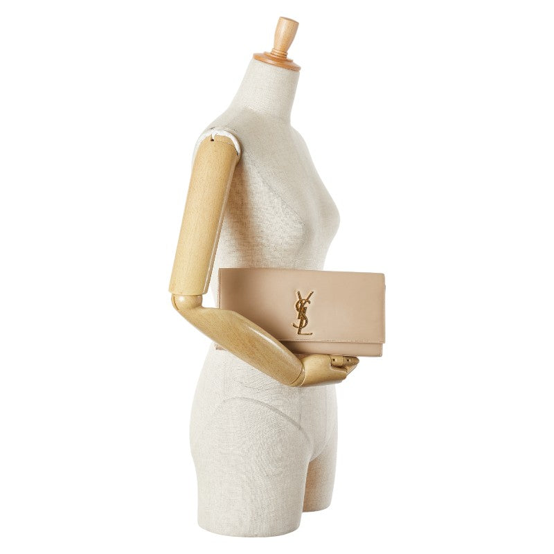 サンローラン YSLロゴ クラッチバッグ 326079 ベージュ レザー レディース SAINT LAURENT 【中古】