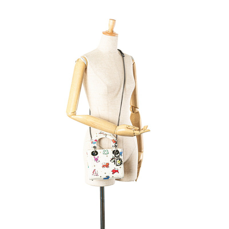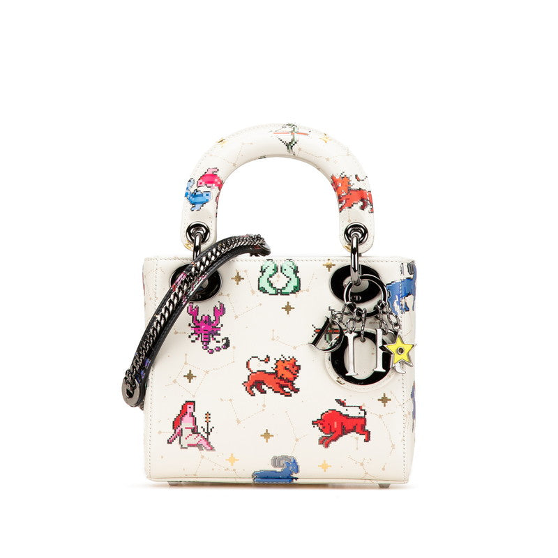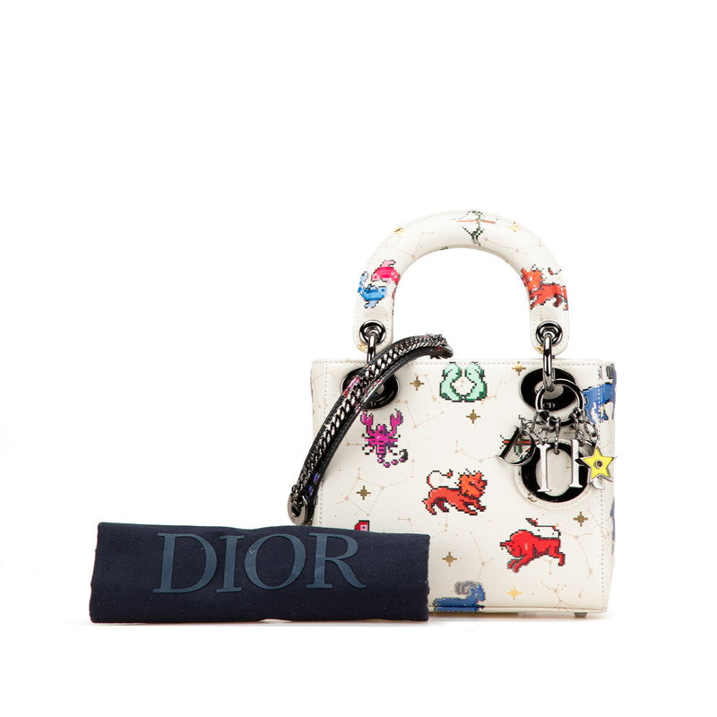 クリスチャンディオール ゾディアック 星座 ピクセル レディディオール ミニ ハンドバッグ ショルダーバッグ 2WAY ホワイト マルチカラー レザー レディース Christian Dior 【中古】