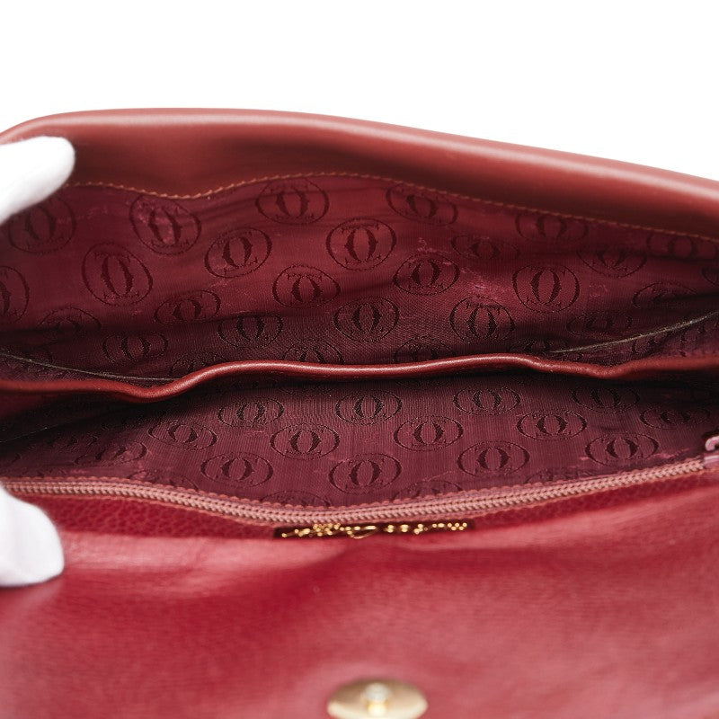 カルティエ マストライン 斜め掛け ショルダーバッグ ワインレッド ボルドー レザー レディース CARTIER 【中古】