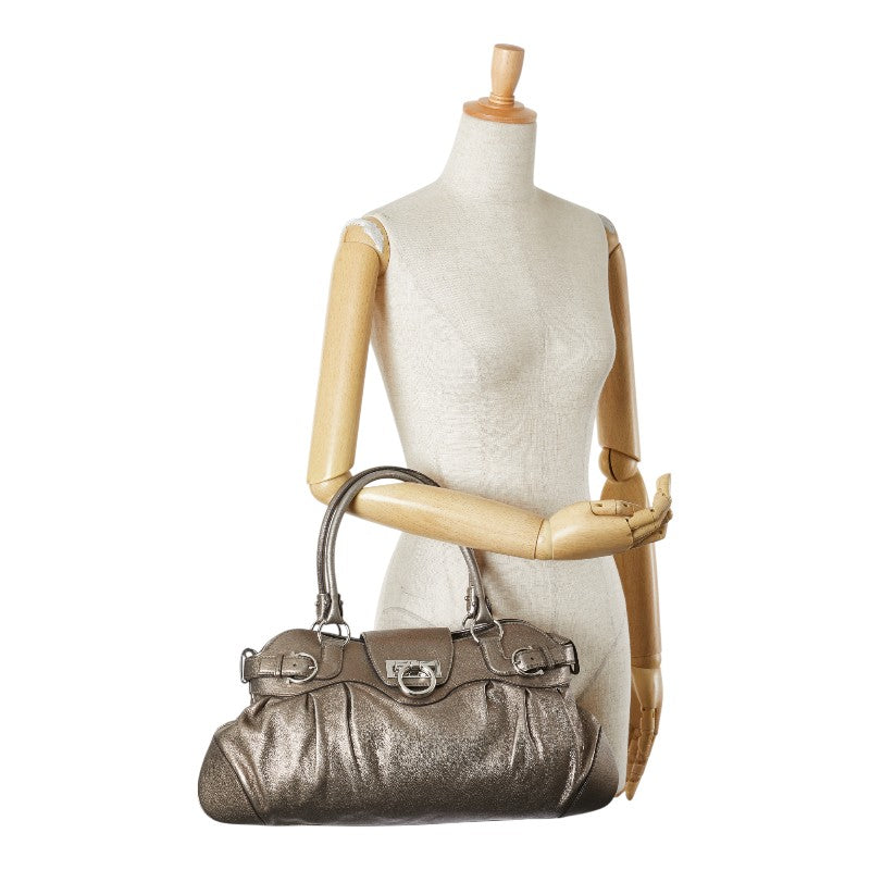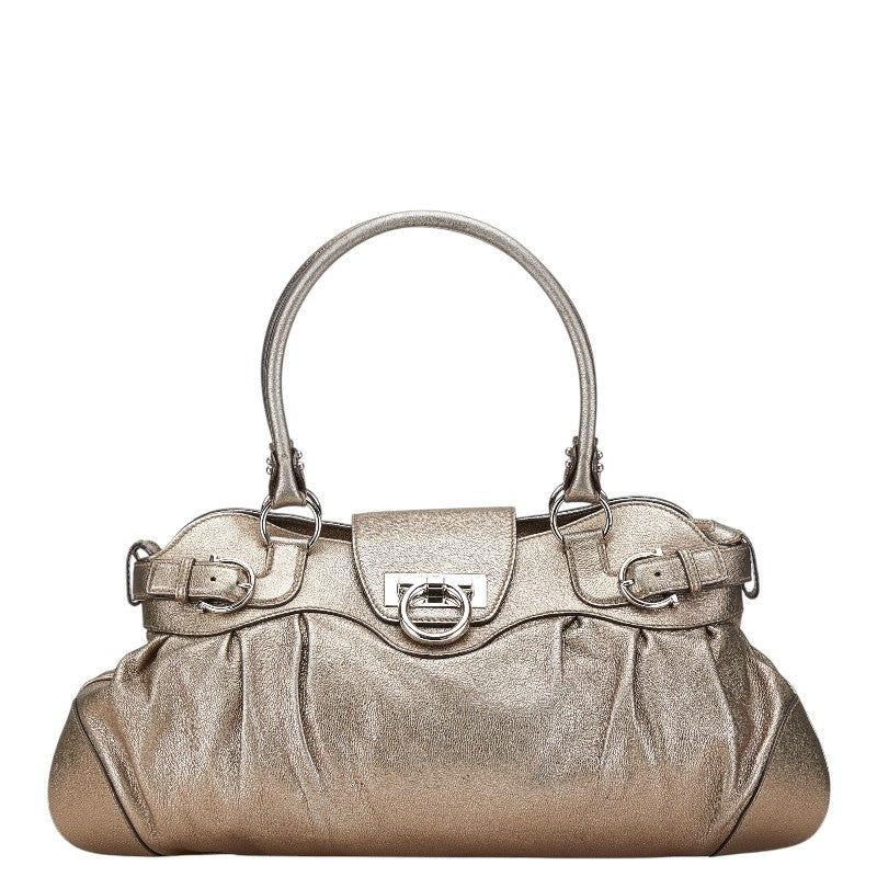 サルヴァトーレフェラガモ ガンチーニ ハンドバッグ ゴールド レザー レディース Salvatore Ferragamo 【中古】