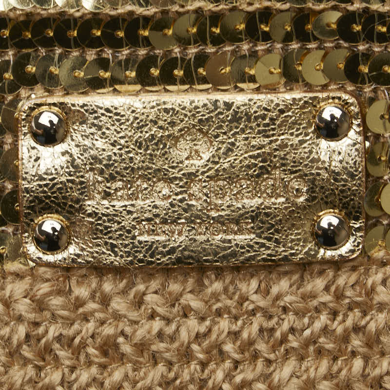 ケイトスペード スパンコール チェーン ハンドバッグ ベージュ ゴールド 麻・リネン レザー レディース Kate Spade 【中古】