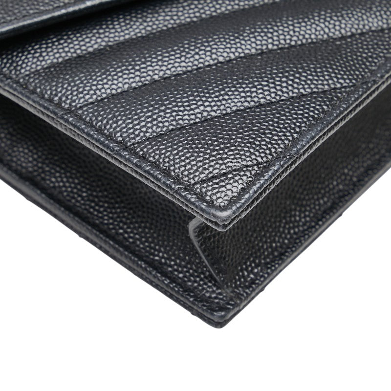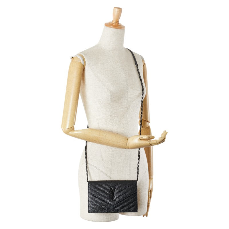 サンローラン YSLロゴ エンベローブ チェーンウォレット ショルダーバッグ ブラック レザー レディース SAINT LAURENT 【中古】