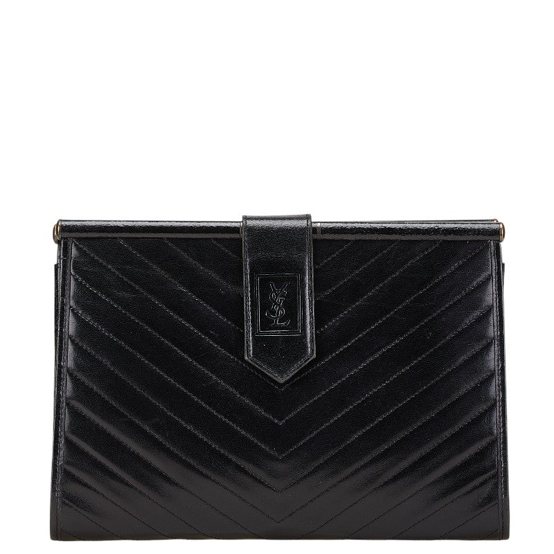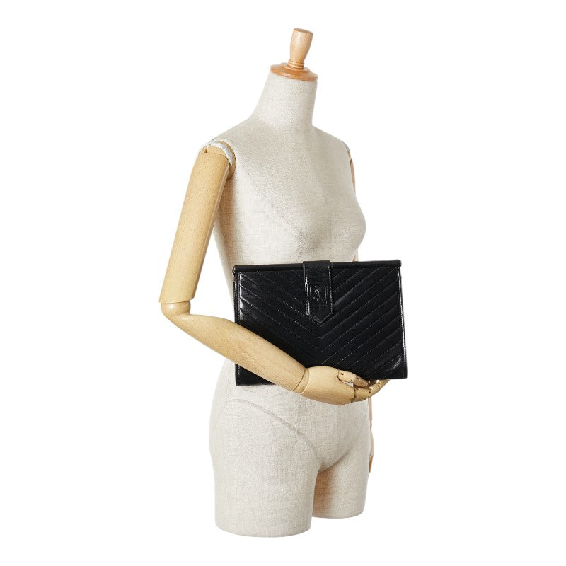 サンローラン YSLロゴ クラッチバッグ ブラック レザー レディース SAINT LAURENT 【中古】