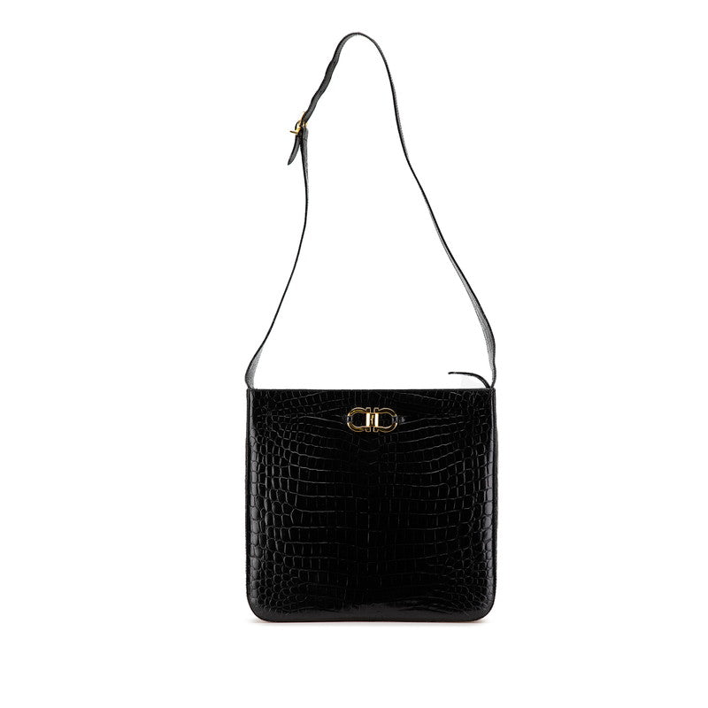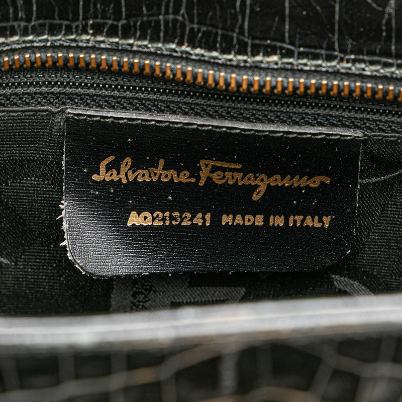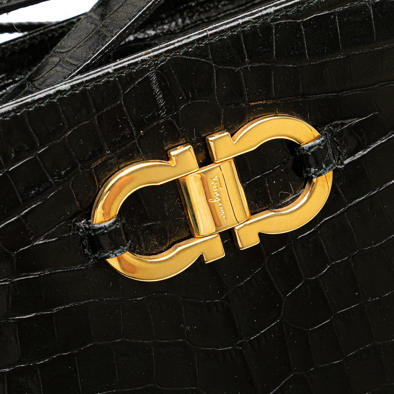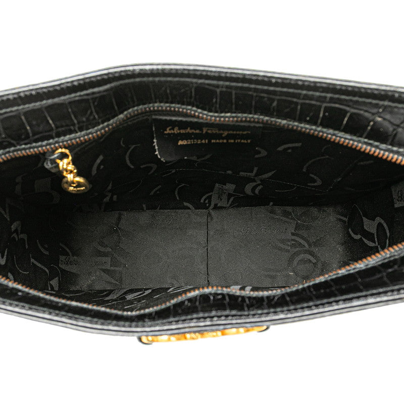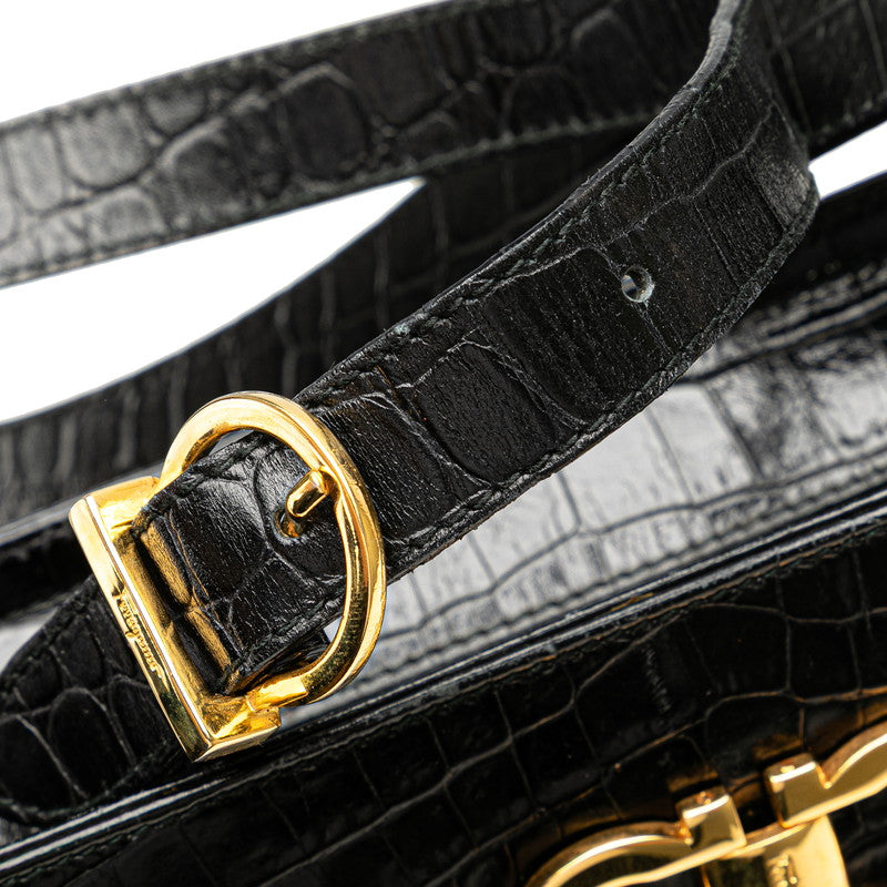 サルヴァトーレフェラガモ ガンチーニ クロコ型押し ショルダーバッグ ブラック レザー レディース Salvatore Ferragamo 【中古】